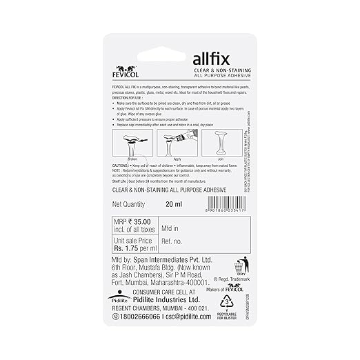 Pidilite Fevicol Allfix Clear And Non-Staining All Purpose Adhesive [20 ML] Pack Of 4