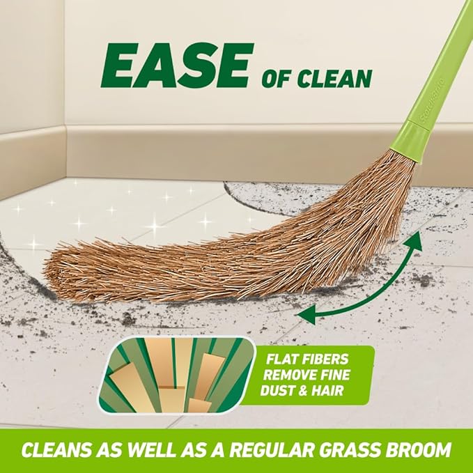 Scotch-Brite broom for fine dust pick-up and superior cleaning in nook and corners. The long handle aids in right posture.