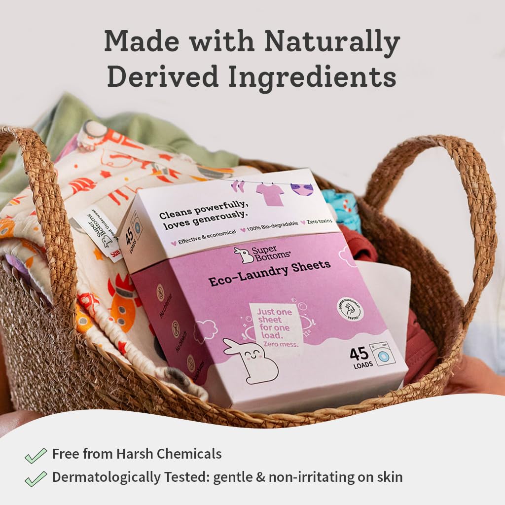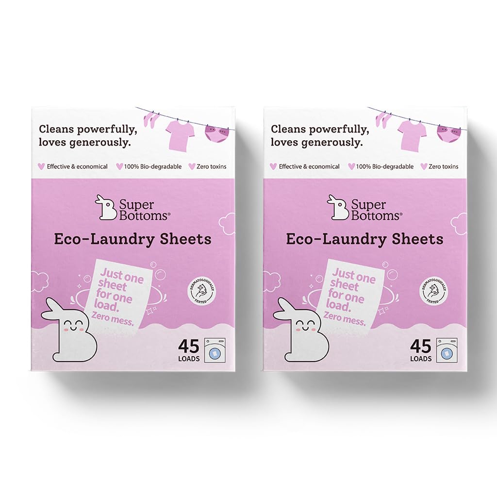SuperBottoms Eco-Laundry Sheets Pack of 2 (45 Sheets each pack) |for Powerful Cleaning| Alternative to Power/Liquid Baby Detergent | Machine & Hand Wash | No Harsh Chemicals | Eco-friendly