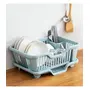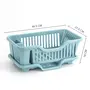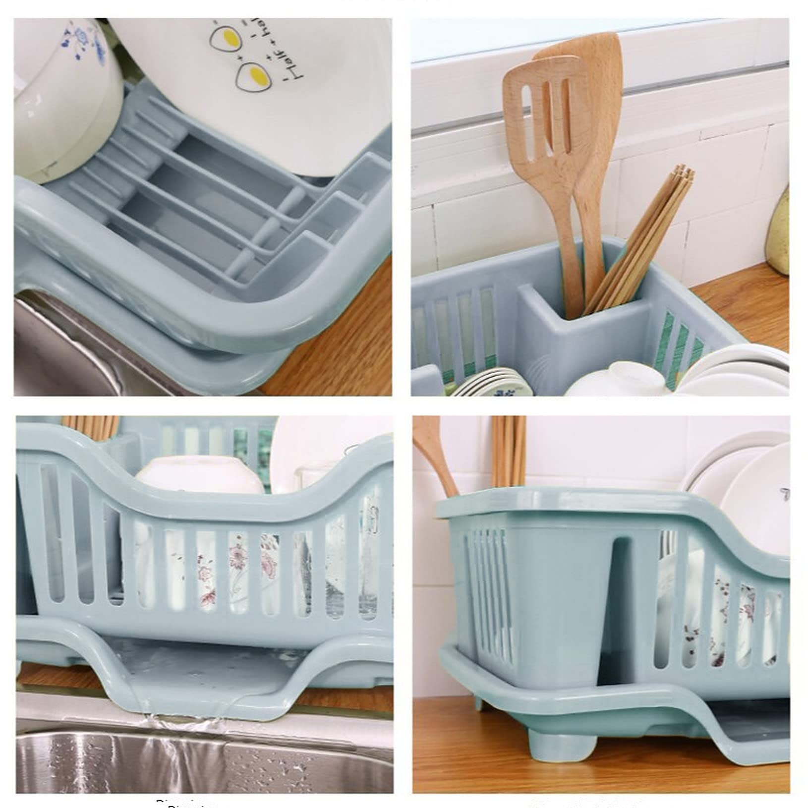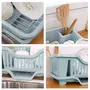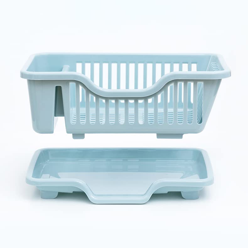 wolpin Plastic Dish Drainer Drying Rack 3 in 1 Kitchen Sink Organisers Water Drain Tray, Cutlery Spoon Holder, Washing Sink Basket Utensils Plate, Blue- 18D x 27.5W x 44.5H Centimeters
