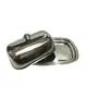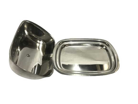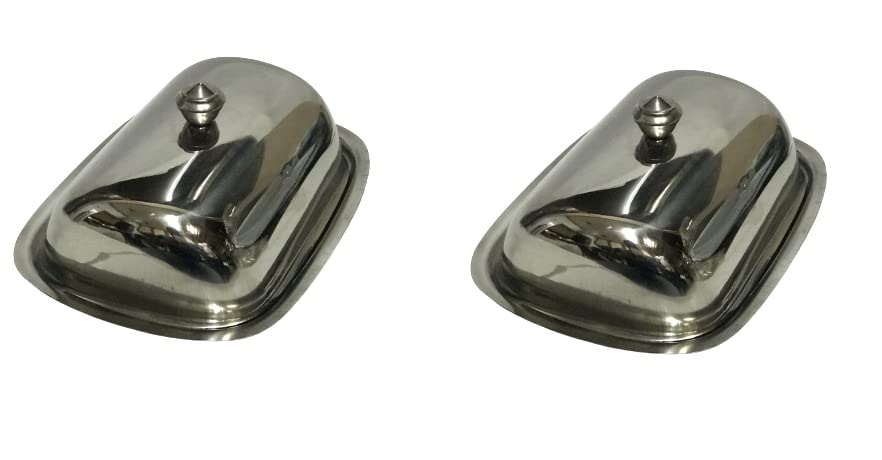 "The butter dish is widely suitable for solid butter cream cheese and other kinds of food which can hold them neatly letting you bid farewell to making a mess The exquisite mirror polished butter dish is made of durable stainless steel The double-layer insulation plate comes with a heavy-duty lid. Whether it is placed in the refrigerator or on the table it can keep the butter at the best temperature. The stainless steel butter dish is dishwasher safe and easy to clean. Product Dimension-15.5x12x5 cm Set of 2"