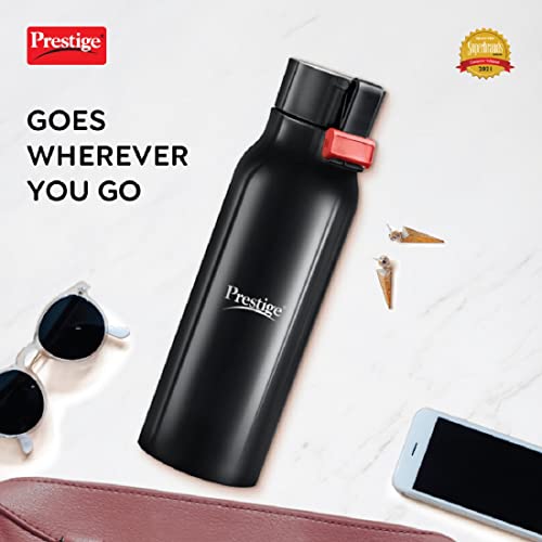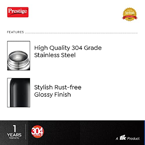 Introducing the stylish and convenient Prestige Double Wall Bottle. It comes with double wall vacuum insulation to maintain your beverage's temperature for hours. The stylish and compact design is perfect to take it everywhere with you and carry anything from hot coffee to chilled water. It is made of 304 grade stainless steel to ensure your beverage is safe with no contamination. It is spill-proof stylish convenient making it a must-have be it on travel or for work.