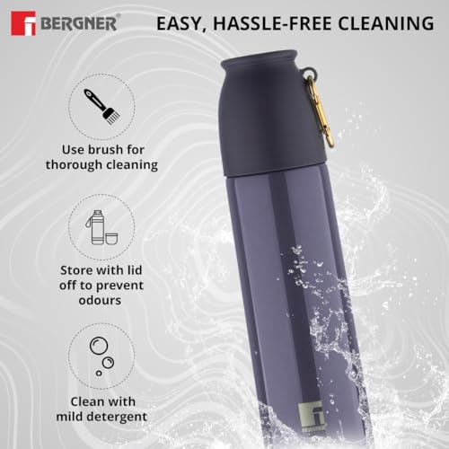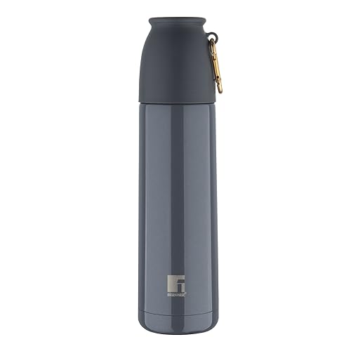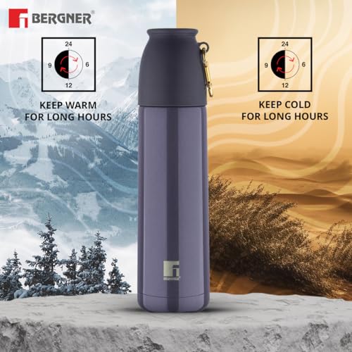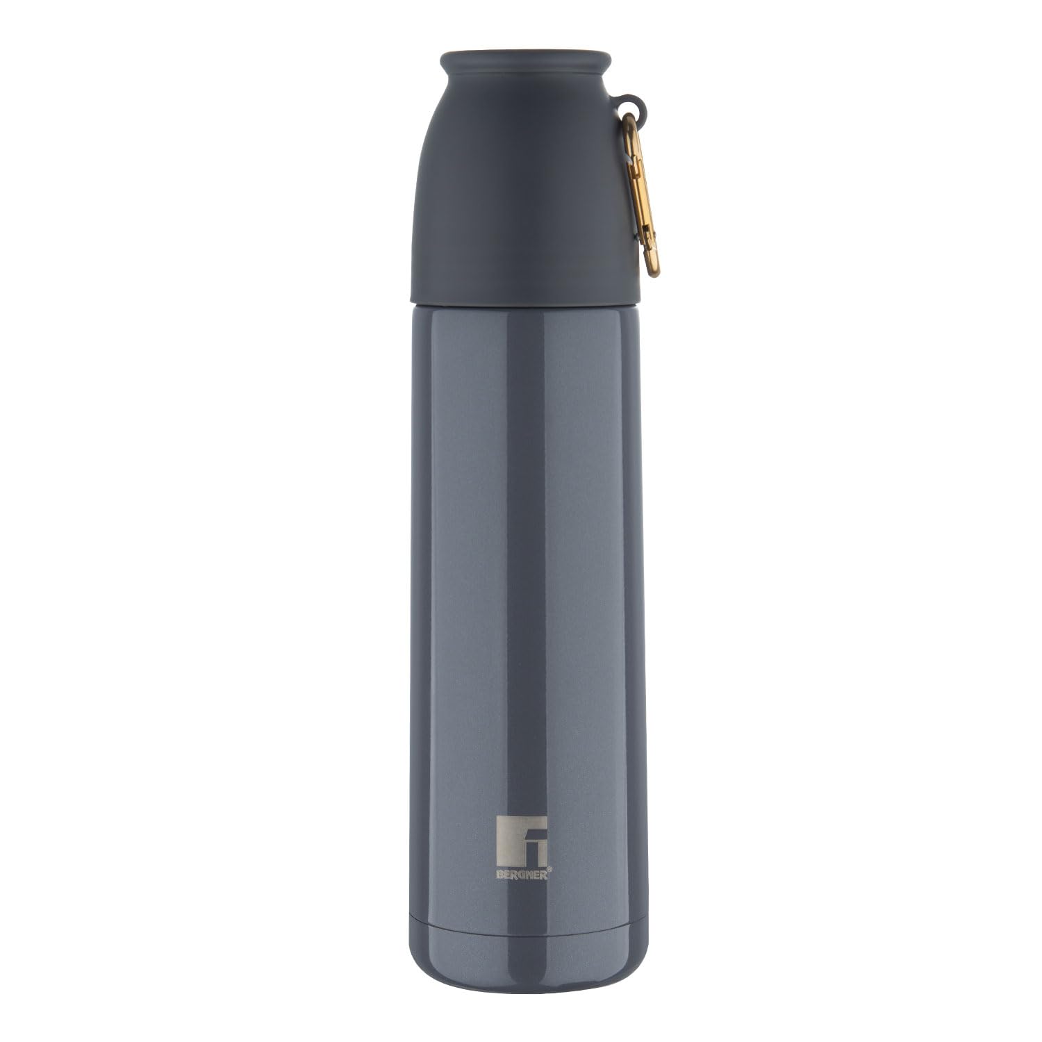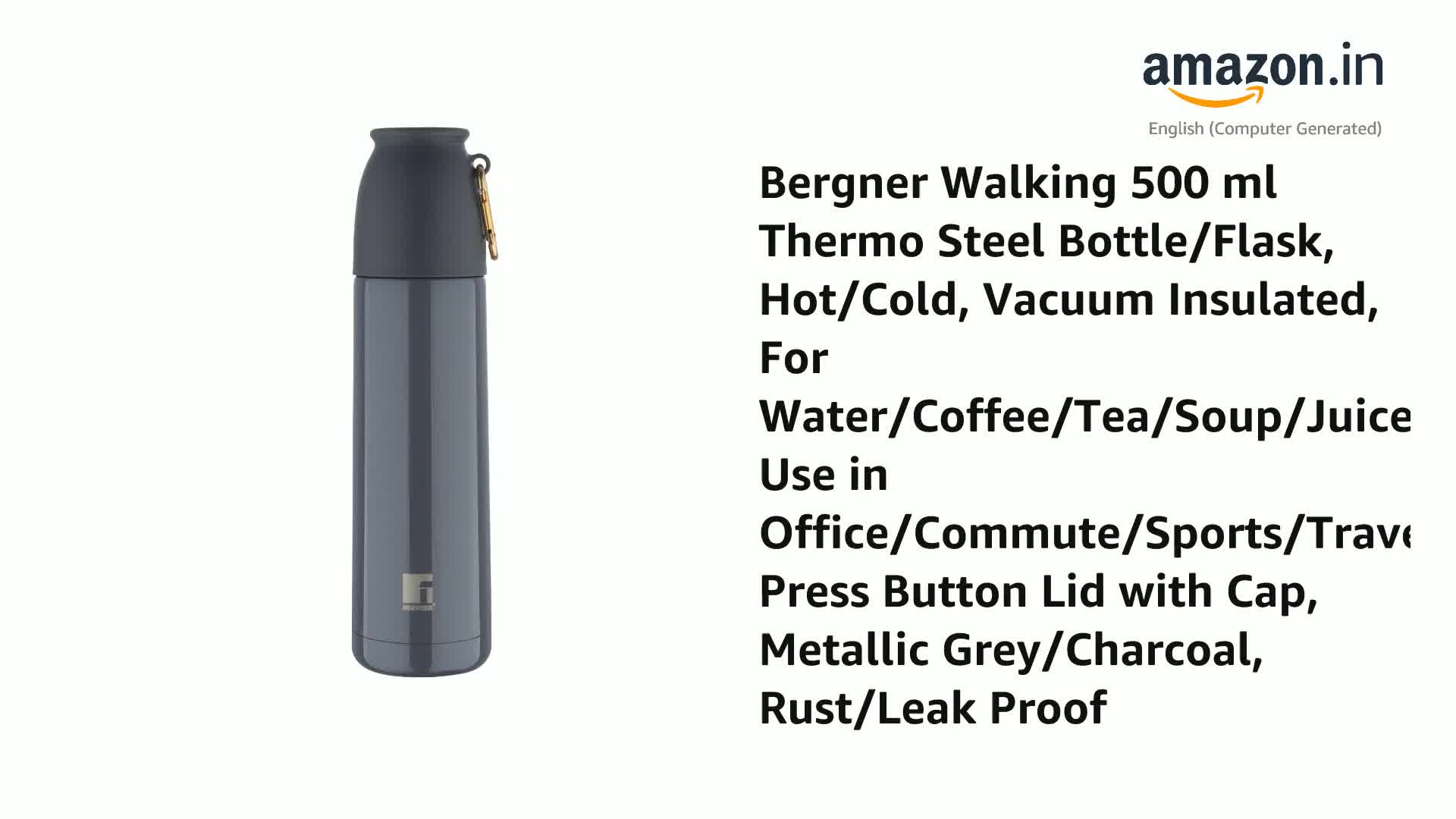 HomeKitchenContainersBottlesBergner Walking 500 ml Thermo Steel Bottle/Flask, Hot/Cold, Vacuum Insulated, For Water/Coffee/Tea/Soup/Juice, Use in Office/Commute/Sports/Travel, Press Button Lid with Cap, Metallic Grey/Charcoal, Rust/Leak Proof
