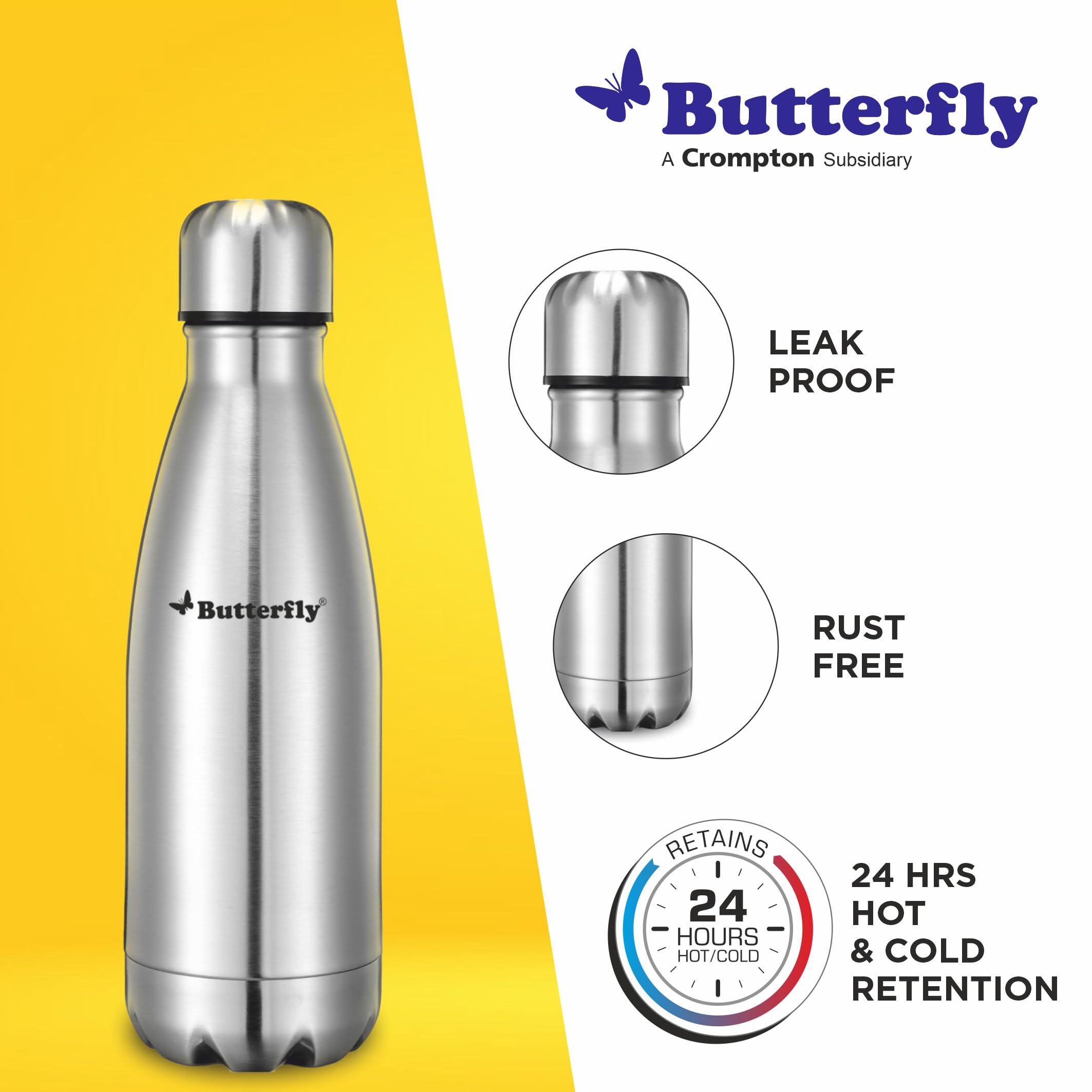 Butterfly Aura Vacuum Flask is our Premium Stainless Steel Vacuum Flask â the ideal companion for those who appreciate the luxury of enjoying their favorite beverages at the perfect temperature wherever they go. Crafted with precision and designed for both style and functionality this vacuum flask is a must-have for your daily adventures. Whether you're savoring a hot morning coffee a refreshing iced tea or a revitalizing soup on a chilly day this flask ensures your drink remains at the perfect temperature. Enjoy quality style and practicality with every sip