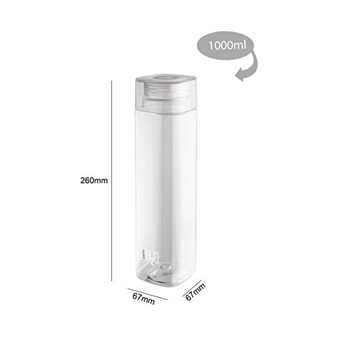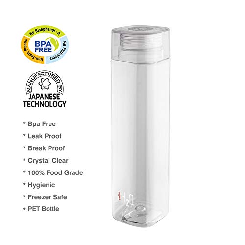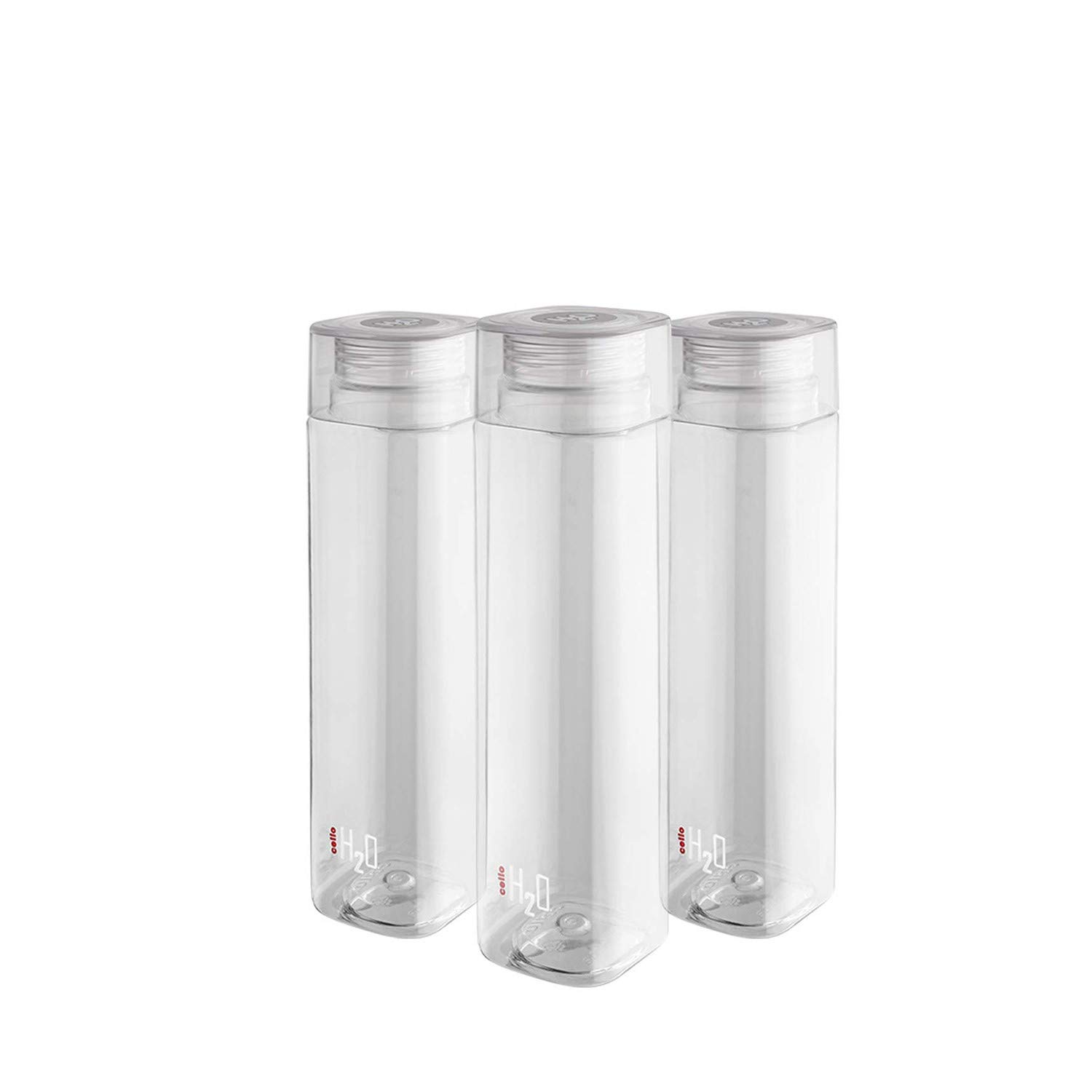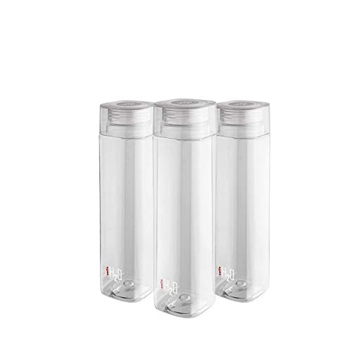 CELLO H2O Squaremate Plastic Water Bottle | Lid is sealed by a silicone ring | Leak proof & break-proof |Best Usage for Office/School/College/Gym/Picnic/Home/Fridge | 1 Liter | Clear, Set of 3