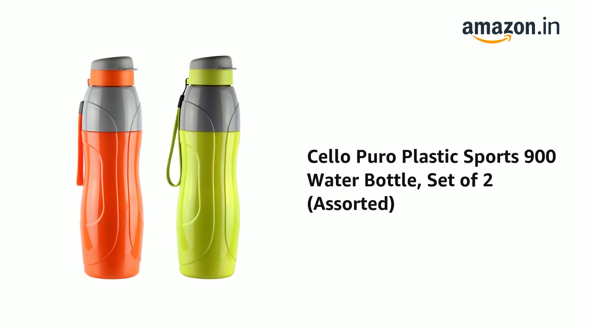 CELLO Puro Sports 900 | Plastic Water Bottle | Leak Proof & Handy and Durable | Set of 2 | 720 ml Each, Assorted