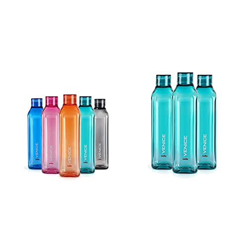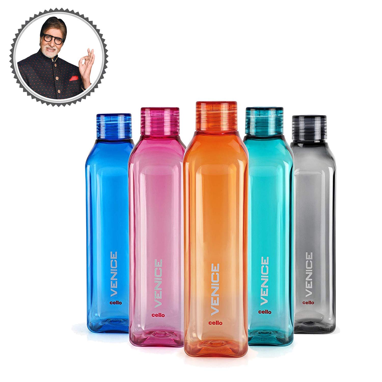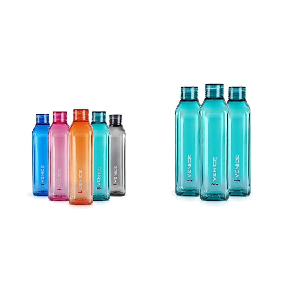 Cello Venice Plastic Bottle Set 1 Litre Set of 5 AssortedManufactured with 100 percent food grade virgin/non toxic plastic this bottle set by Cello is BPA-free ensuring a healthier lifestyle. These crystal clear bottles are spill proof and easy to pour. Not only are these bottles leak-proof it is also unbreakable and extremely durable. Cello makes these bottles to be freezer and refrigerator safe. These reusable bottles come in various colours giving it a vibrant edge over other bottles. Ergonomically designed these lightweightt and compact bottles are very useful for your everyday need.Cello Venice Plastic Water Bottle 1 Litre Set of 3 GreenFor over two decades cello has been continuously evolving; anticipating consumer needs to manufacture range of hygienic products to help preserve health of your loved ones. Cello has an unmatched range of insulated thermo ware products with world classic designs made from German polyurethane foam manufactured at their ultra-modern plant in daman and haridwar. Its range includes water jugs water bottles lunch carrier casseroles jugs flasks and more to keep food hot and tasty or to enjoy a hot or beverage. No wonder millions of families in India and around the world have put their trust in cello After all wherever there is love wherever there is joy thereâs cello a companion of your life.