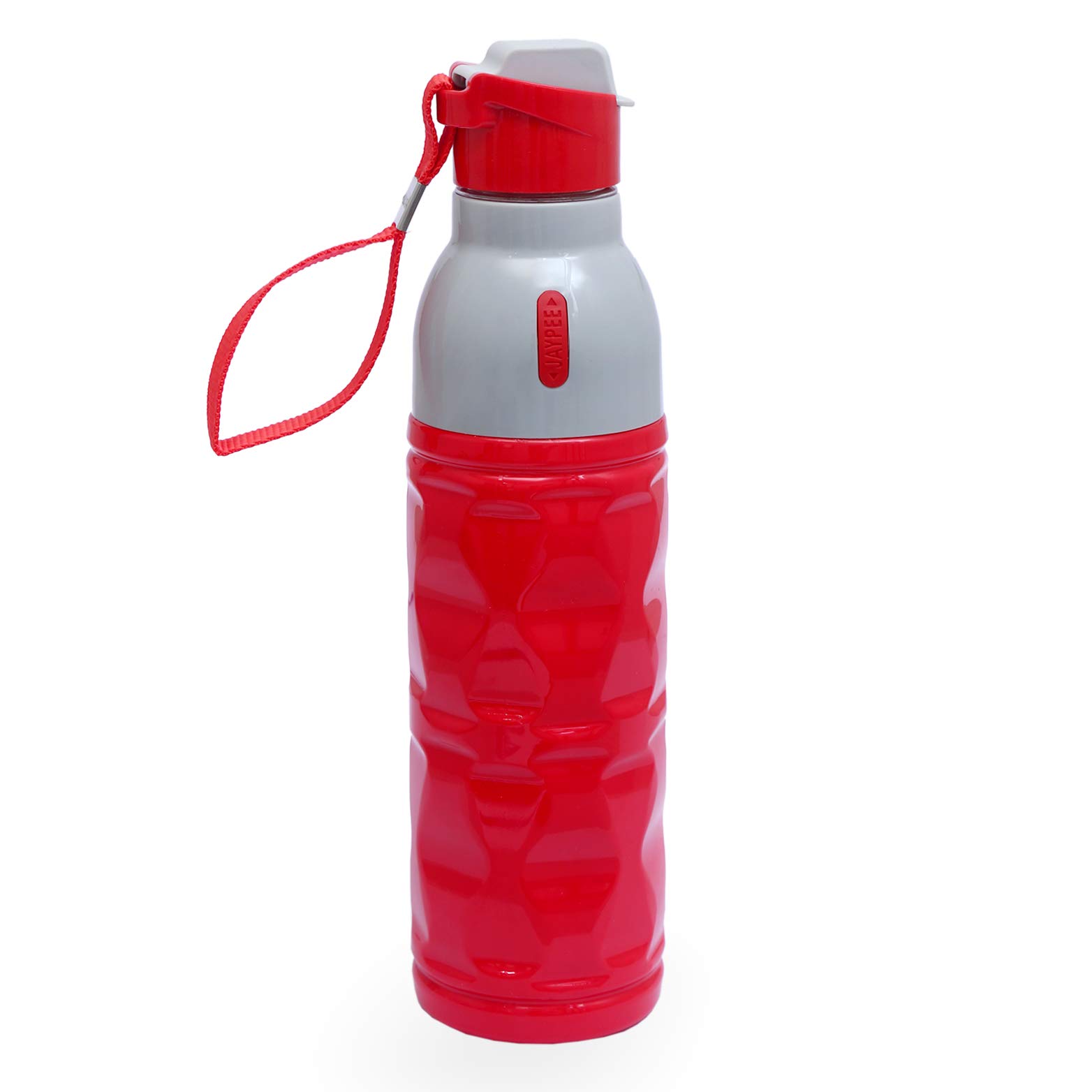 Color name:GreenThese light weight and compact insulated water bottles are very useful for your everyday needs. These bottles are known for their high quality and durability. The flip top cap permits you to have your drinks without fully opening the lid. These bottles come in a convenient size that can fit snugly in the side pocket of your bag. The Bottles are designed & manufactured with the superior quality of PET plastic material (BPA free) to ensure a safe & healthy drink for you & your loved ones. PET bottles are not recommended for hot drinks. Whether you are at work or at a day school or at a road trip these reusable and vibrant bottles can hold 650 ml of liquid making it super convenient for use. Highly recommended for school goers.