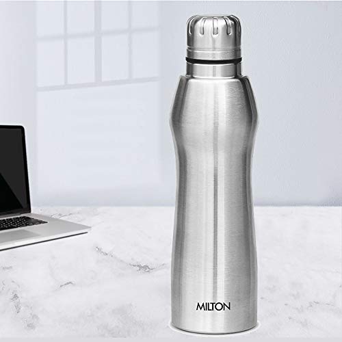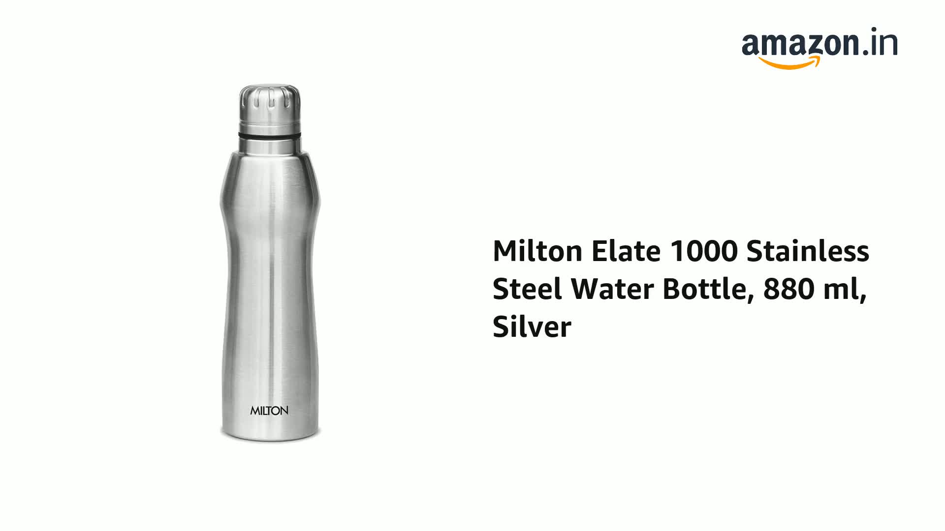 MILTON Elate 1000 Stainless Steel Water Bottle 880 ml, Single Walled, ISI Certified I Leak Proof Lid, Rust Proof I For School, Office, Gym I Silver