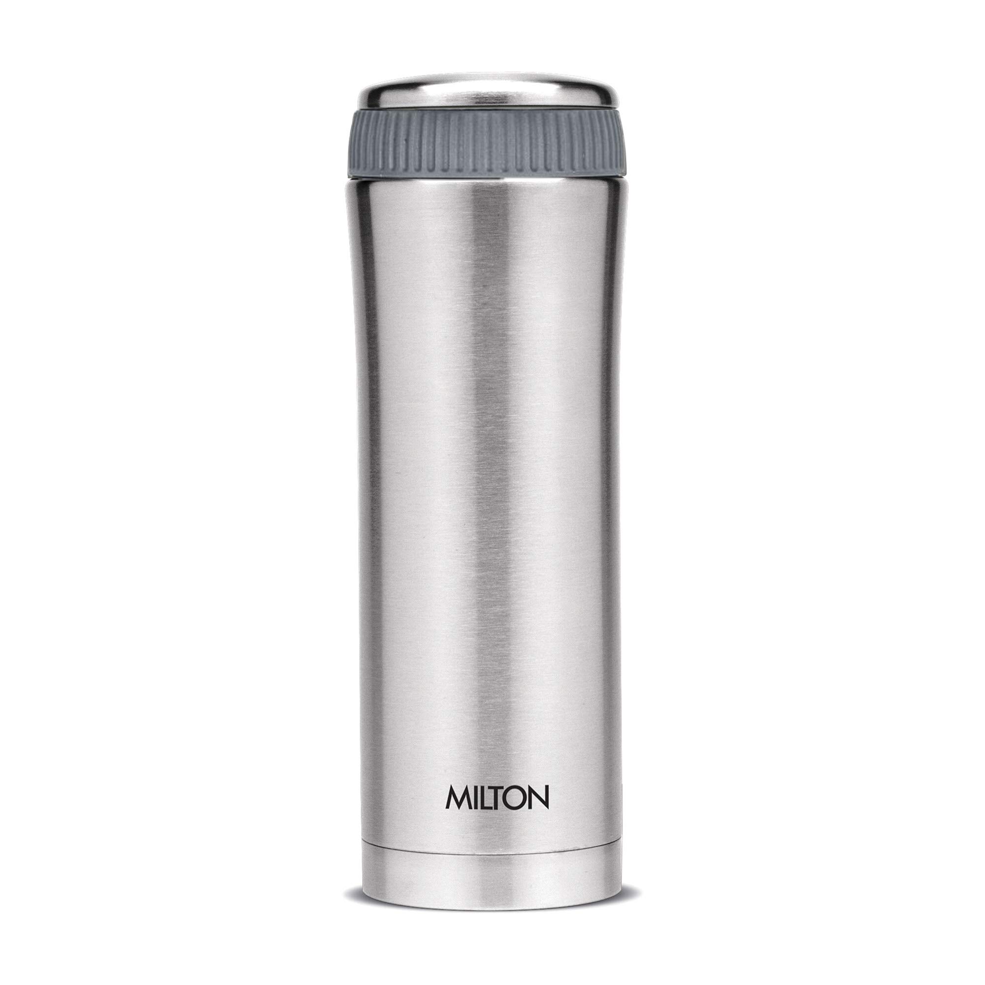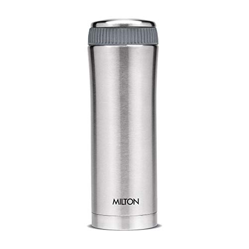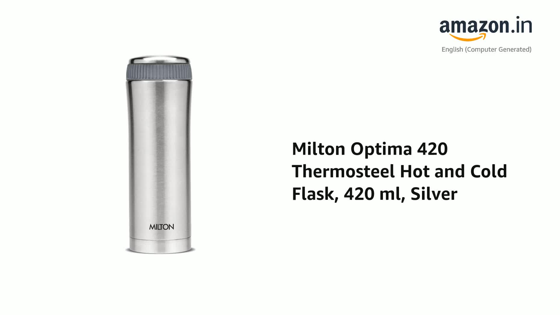 Ideal beverage carrying solution whether you prefer having your own coffee or tea at office or like to have a fresh cup of buttermilk or your favourite fruit juice the Milton Optima Thermosteel flask is the perfect solution for your beverage consumption needs. Its compact size makes it an easy fit in most office bags and backpacks adding to its portability feature. Use this flask to carry tea coffee fruit juices lassi and other beverages wherever you go. Unique design with temperature retention a rich steel finish on the outside the Milton Thermosteel Optima flask helps make a style statement wherever you carry it along. The insulation ensures that your beverages stay hot or cold for hours for a perfect consumption experience. Furthermore it features a separate compartment for carrying sugar medicine or tea bags on the go. Easy to use clean and maintain using this Milton Thermosteel Optima flask is an easy task as you simply have to fill it up with your favourite beverage preferably to the brim to maintain temperature for a long time. It is easy to clean as you simply need to use a mild soap solution and avoid strong detergents to keep it looking new for a long time. To avoid odours developing over time keep the flask lid open when not in use.
