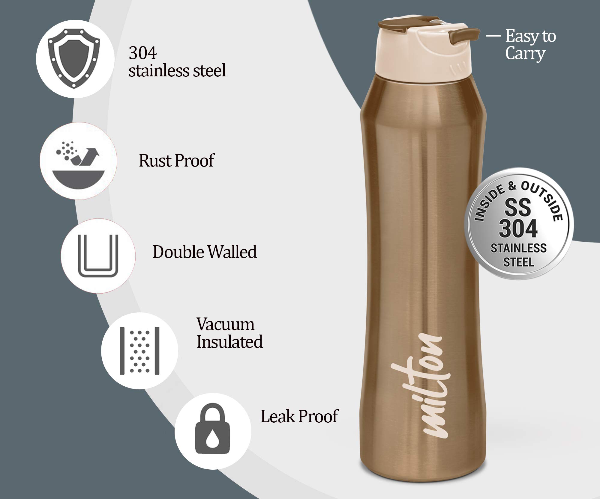 Milton Stark 900 Thermosteel 24 Hours Hot or Cold Water Bottle 790 ml Brown