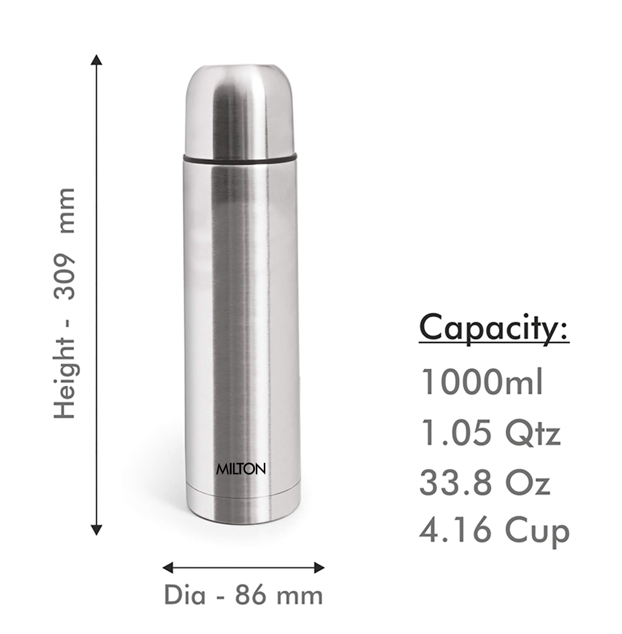 Milton Thermosteel Plain Lid Flask, 1000 milliliters, Silver