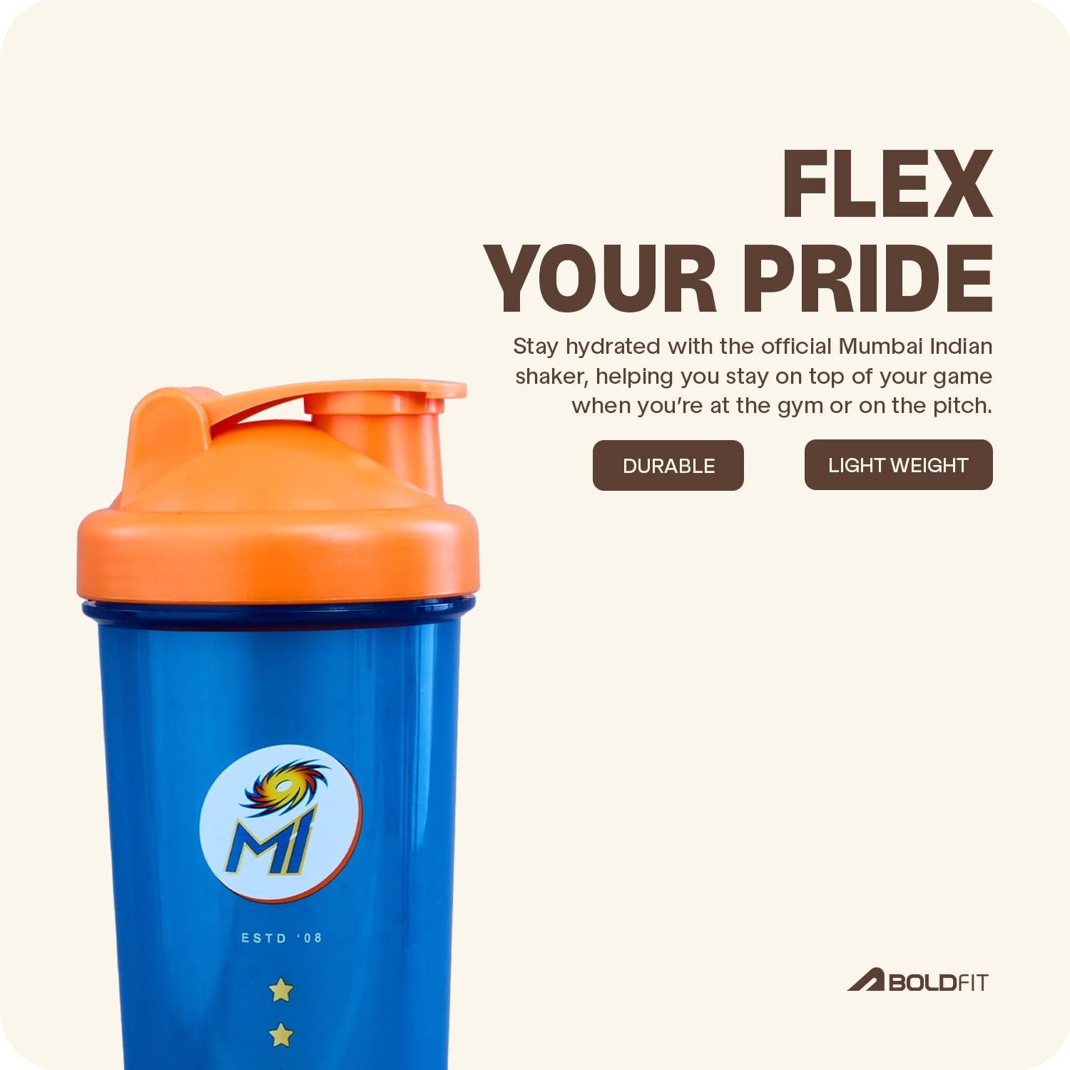Mumbai Indians (MI) Official Merchandise Gym Shaker for Protein Shake Leakproof Shaker Bottles for Protein Preworkout & Bcaa Shake Protein Shaker Bottle for Gym Gym Bottle for Men - BlueOrange