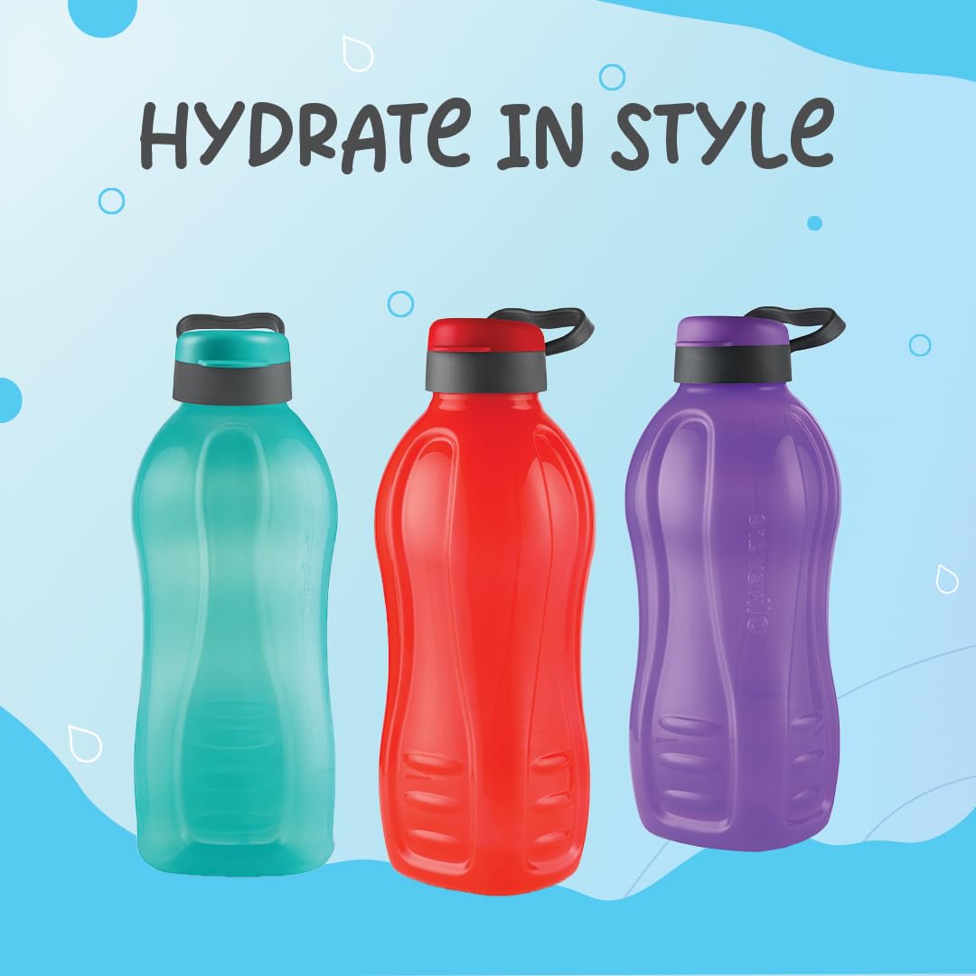 oliveware Jumbo 2 Litre Water Bottle 100% Leak Proof BPA Free Premium Plastic Bottle for Home Office & Gym Sturdy with Holder Pack of 3 (Red)