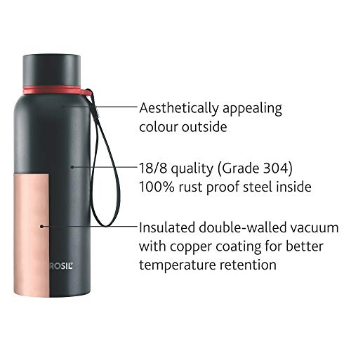 Borosil - Stainless Steel Hydra Trek - Vacuum Insulated Flask Water Bottle Black 500MLCarry your favourite immunity boosting beverage on the go. Enjoy your favourite drink anytime anywhere with Borosil Hydra Tek bottle. With its semi-matte finish the trek bottle in earthy colours will remind you every time you take a sip that by shunning plastic you are helping ease the burden on our planet.Borosil Stainless Steel Hydra Trek - Vacuum Insulated Flask Water Bottle 850 ML BlackThe Borosil Trek range is a vacuum insulated double walled flask that keeps your beverage hot for 20 hours and cold for 24 hours. The sling on the bottle helps you to carry and hold the bottle easily. The trek range come with a wide mouth for easy cleaning and pouring. The flask is suitable for carrying to gyms to be kept on your office desk as wells can easily fit in the side pocket of your bag.