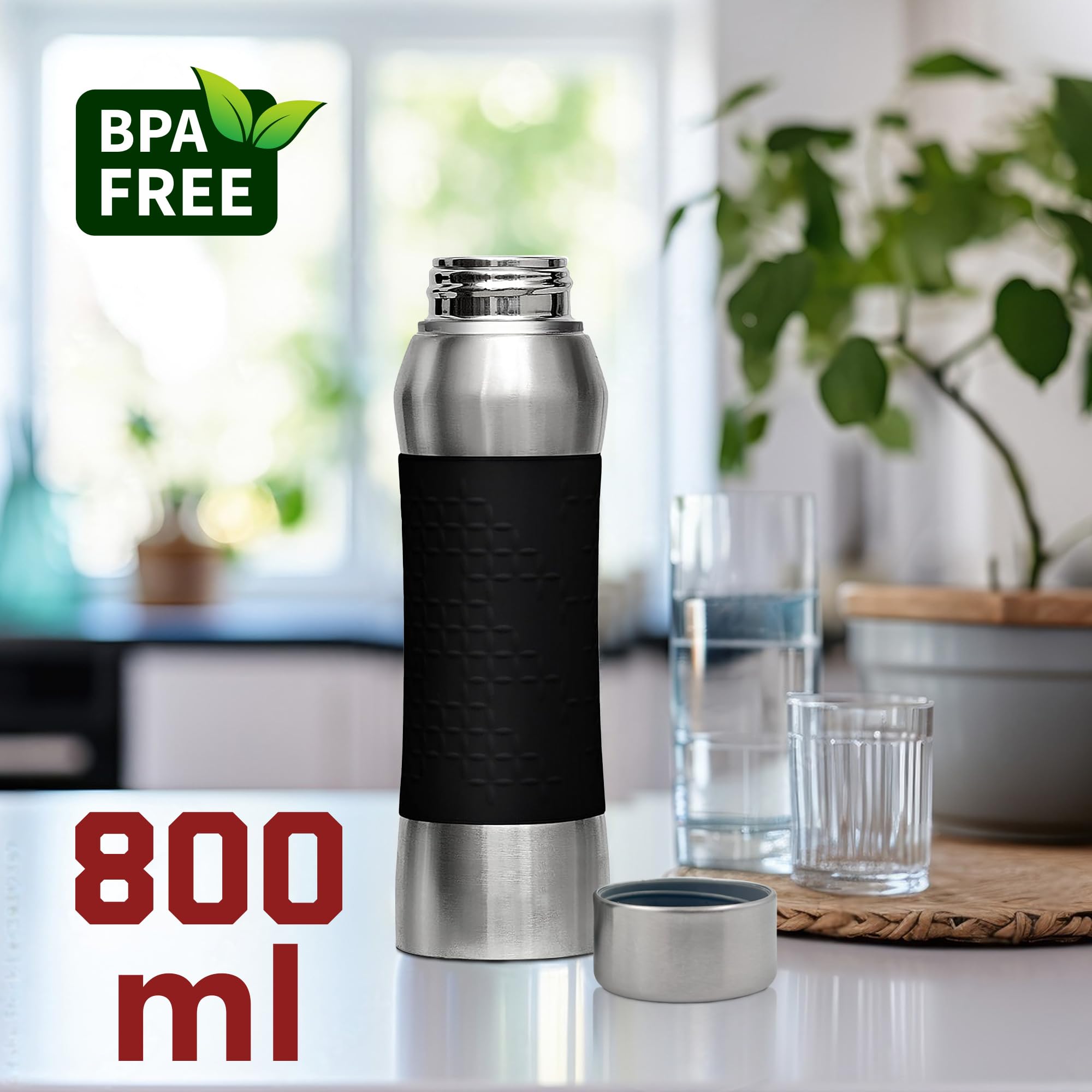 HomeKitchenContainersBottlesSLOVIC Steel Water Bottle (800 ml) | Stainless Steel Water Bottle for Home School Gym Travel | BPA-Free | Leak-Proof Water Bottle for Girls and Boys | Kids Water Bottle | Gym Water Bottle