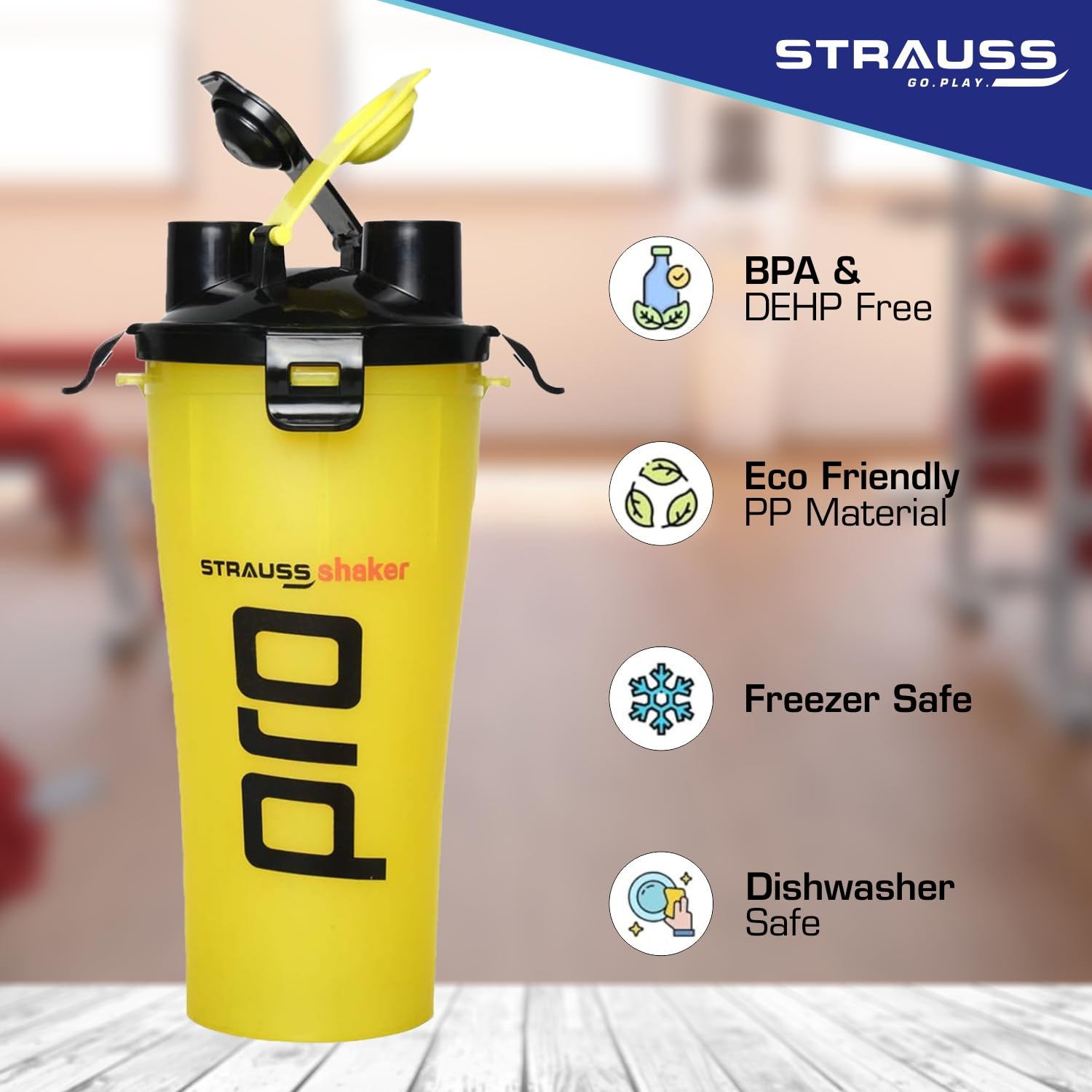 STRAUSS Dual Shaker Pro | Pre & Post Protein Shake On the Go | Leakproof and BPA-Free Material | Dual Shaker Bottle | Protein Shaker Bottle for Gym | Suitable for Both Men and Women, 700ml