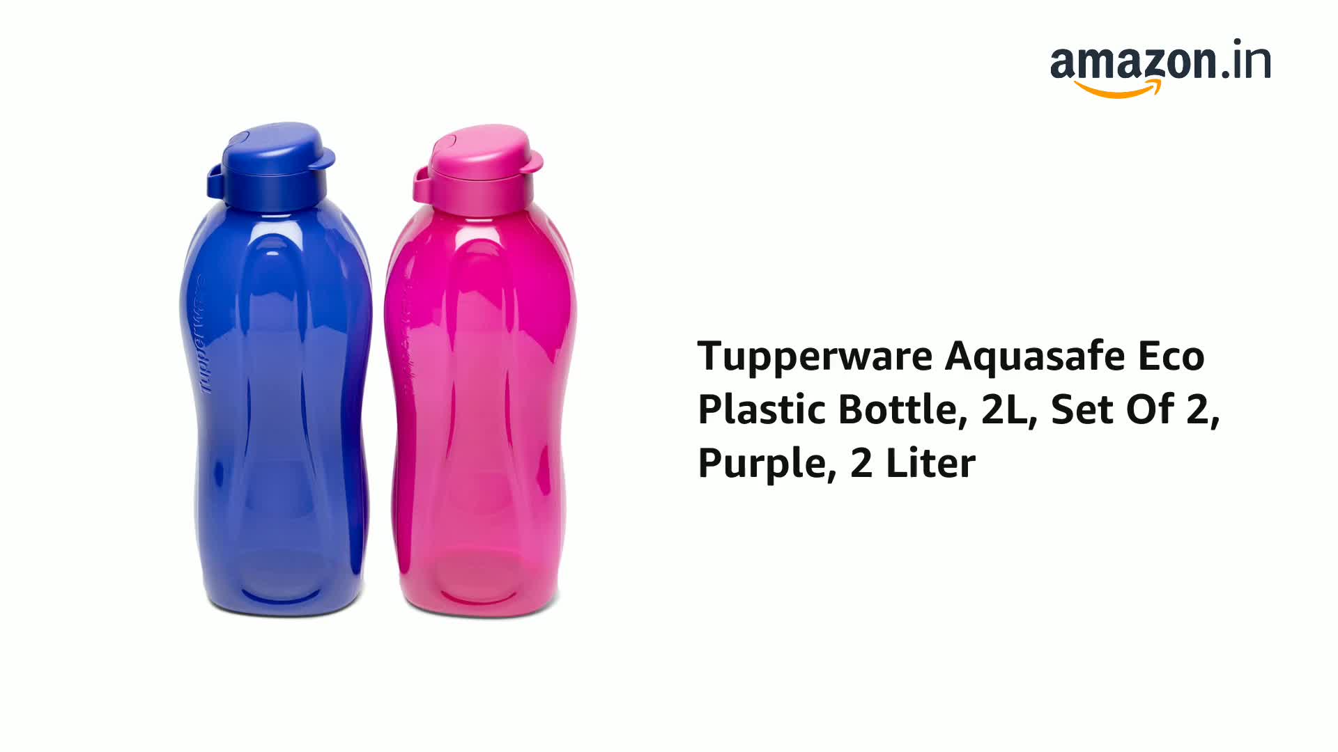 Stay hydrated with these eco-friendly extra-large stylish Aquasafe Eco Bottles by Tupperware. Use them for storing chilled water in the fridge or for pouring water out during a meal. Their curvy yet compact design ensures that they fit into the door of any refrigerator. Their leakproof flip-top lids ensure that no water leaks out while pouring drinking or storing. Their capacity of 2 litres makes them ideal for carrying on road trips or on treks. Don't buy questionable bottled water from the roadside while you're on the move carry it from home in these! Suited for water or water-based beverages like iced tea or lemonade. Not suitable for hot beverages or carbonated drinks.