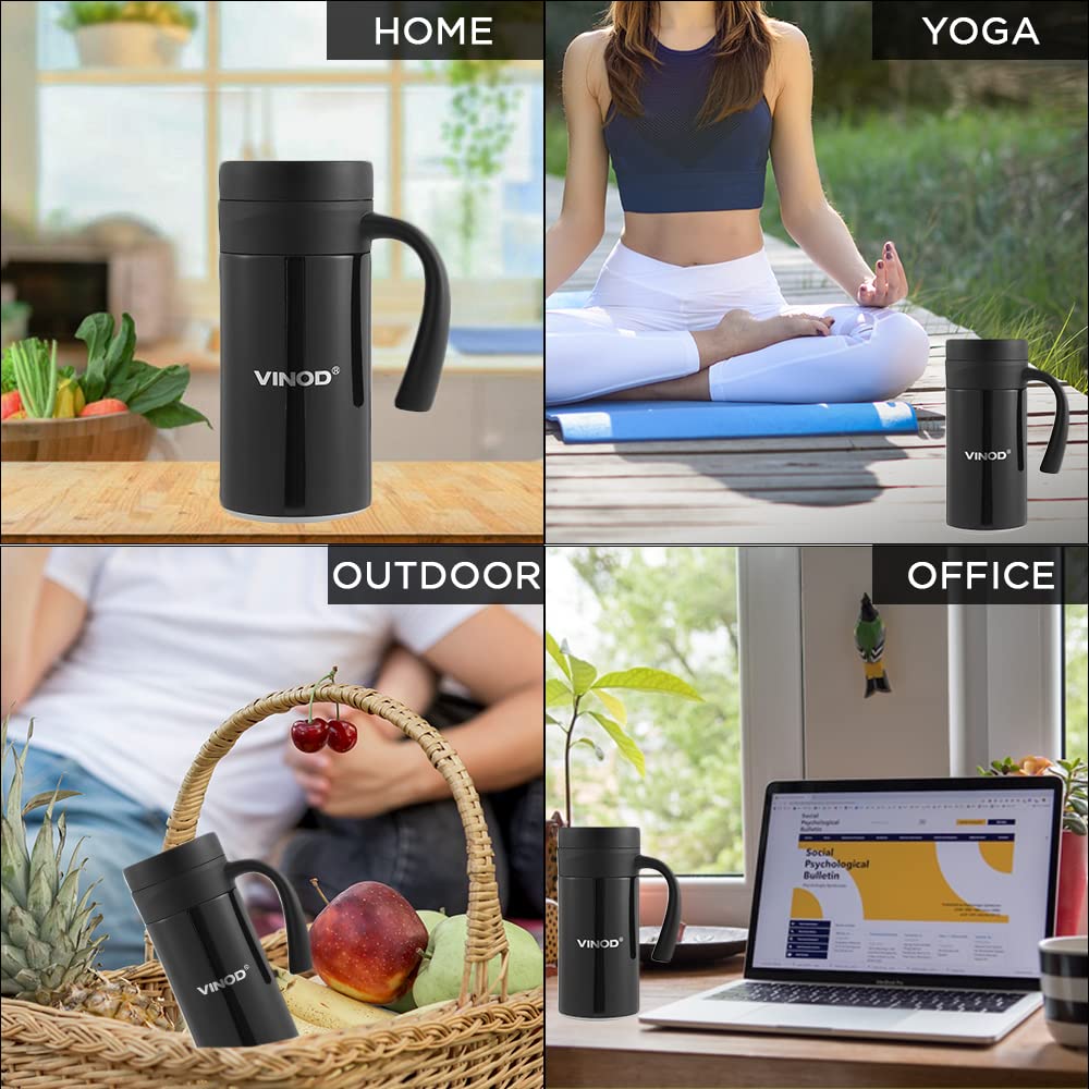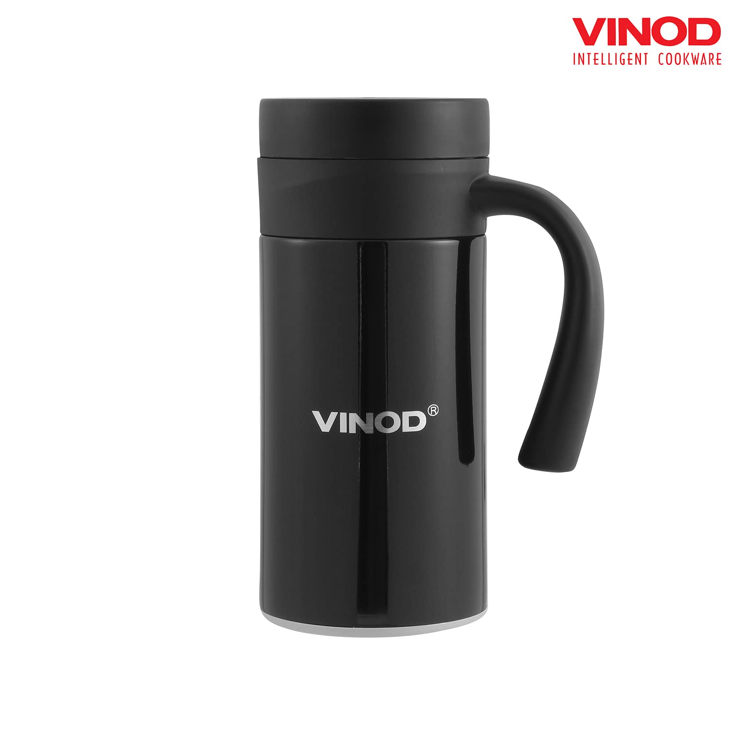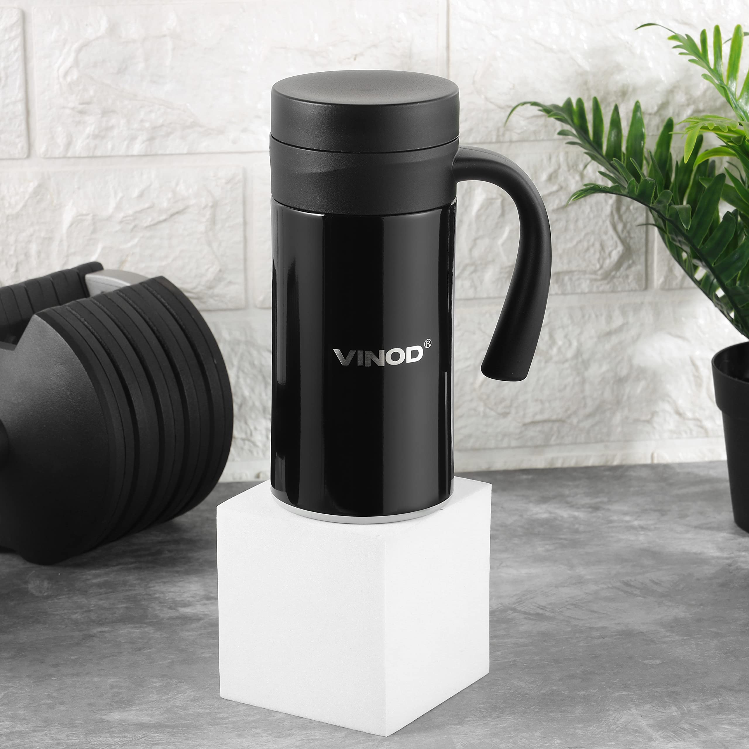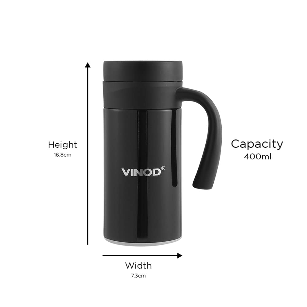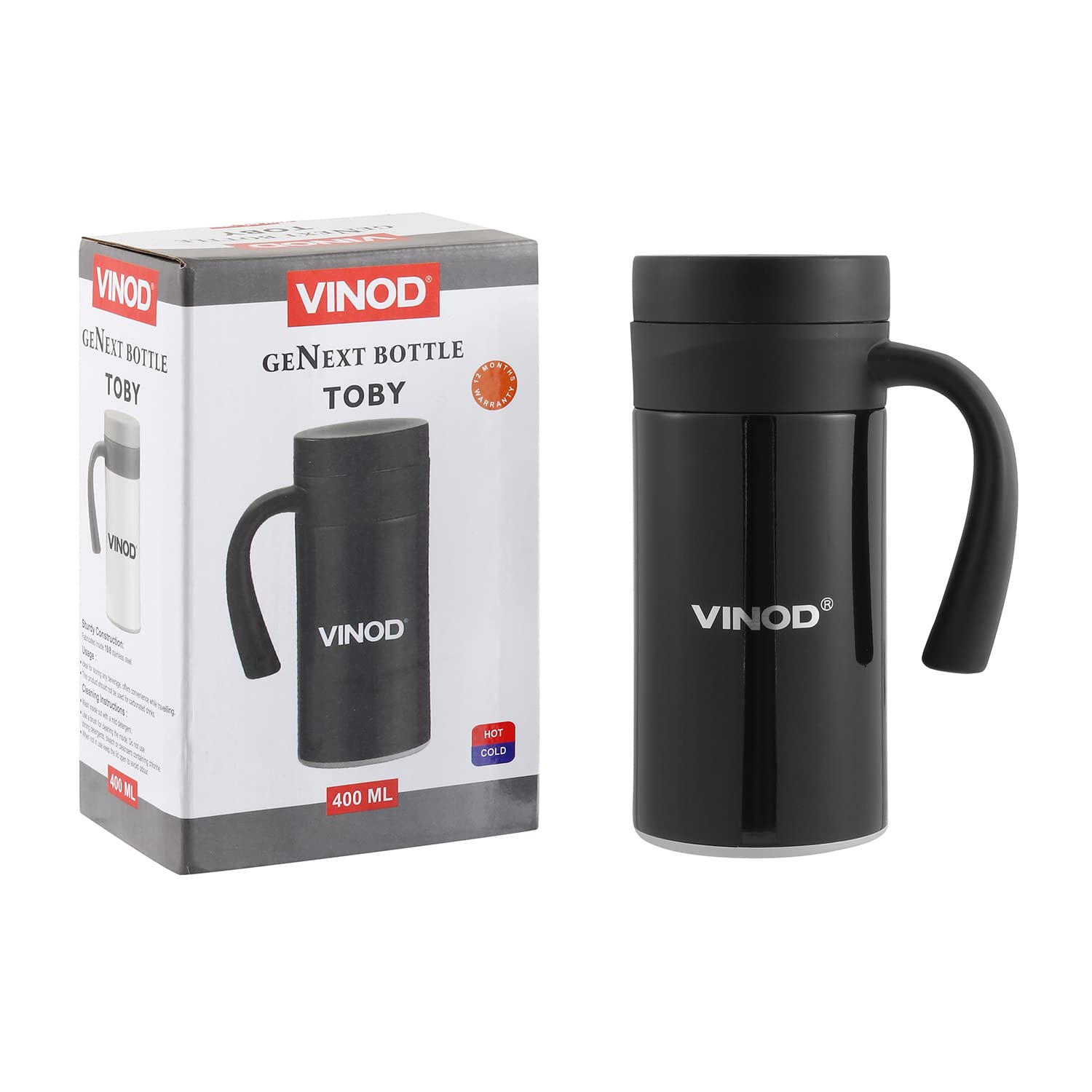 Vinod Toby Flask Stainless Steel Coffee Mug - 400 ml | Hot and Cold | Double Wall Vacuum Insulated Travel Mug | Easy to Grip Handle - Black