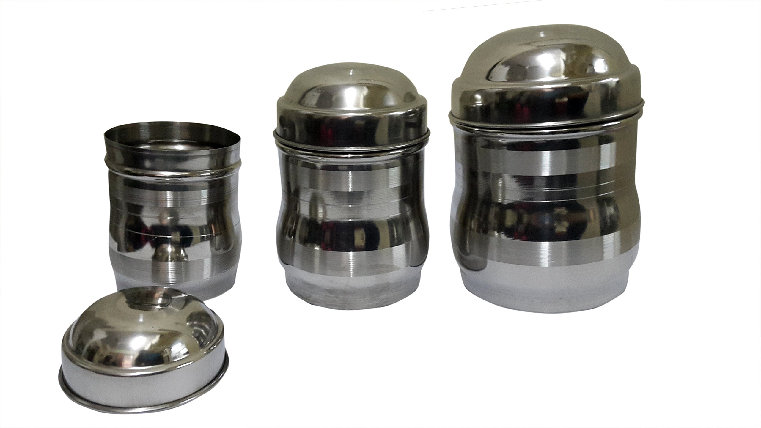 Set of 3 Maharaja Tool touch canisters; 3 piece set of canisters / kitchen storage made up of stainless steel with tool touch, is very high quality, extremely durable and rust free.