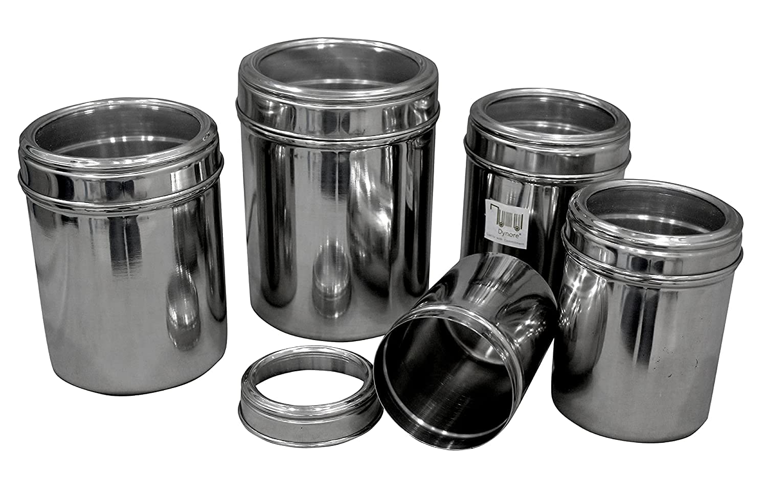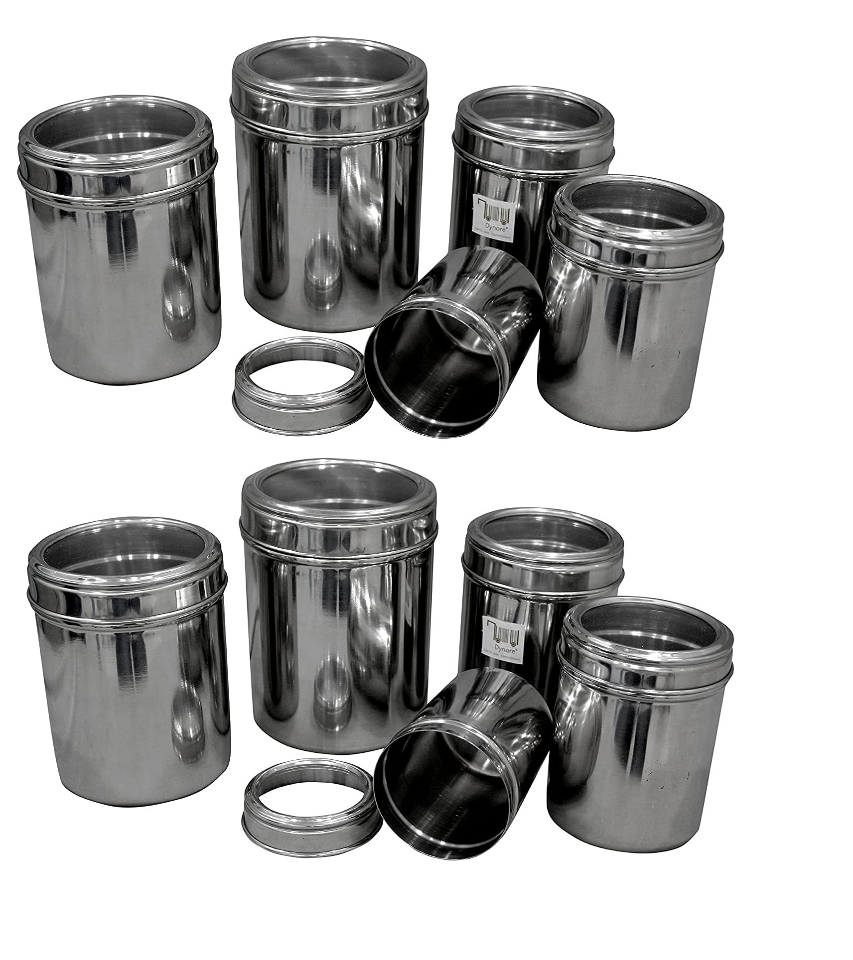 10 piececanisters / kitchen storage made up of stainless steel and being very high quality and extremely durable and rust free. Having mirror at the top helps to see through the items easily without opening the same.