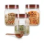 MILTON Vintage Airtight Containers with Spoons for Kitchen Storage, Food Grade Plastic, Stackable & Transparent Organizer Jars, Masala Dabba, Set of 3 (500 ml each) for Tea, Coffee, Sugar, Dry Fruits