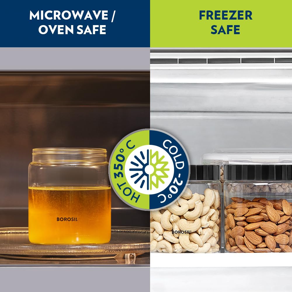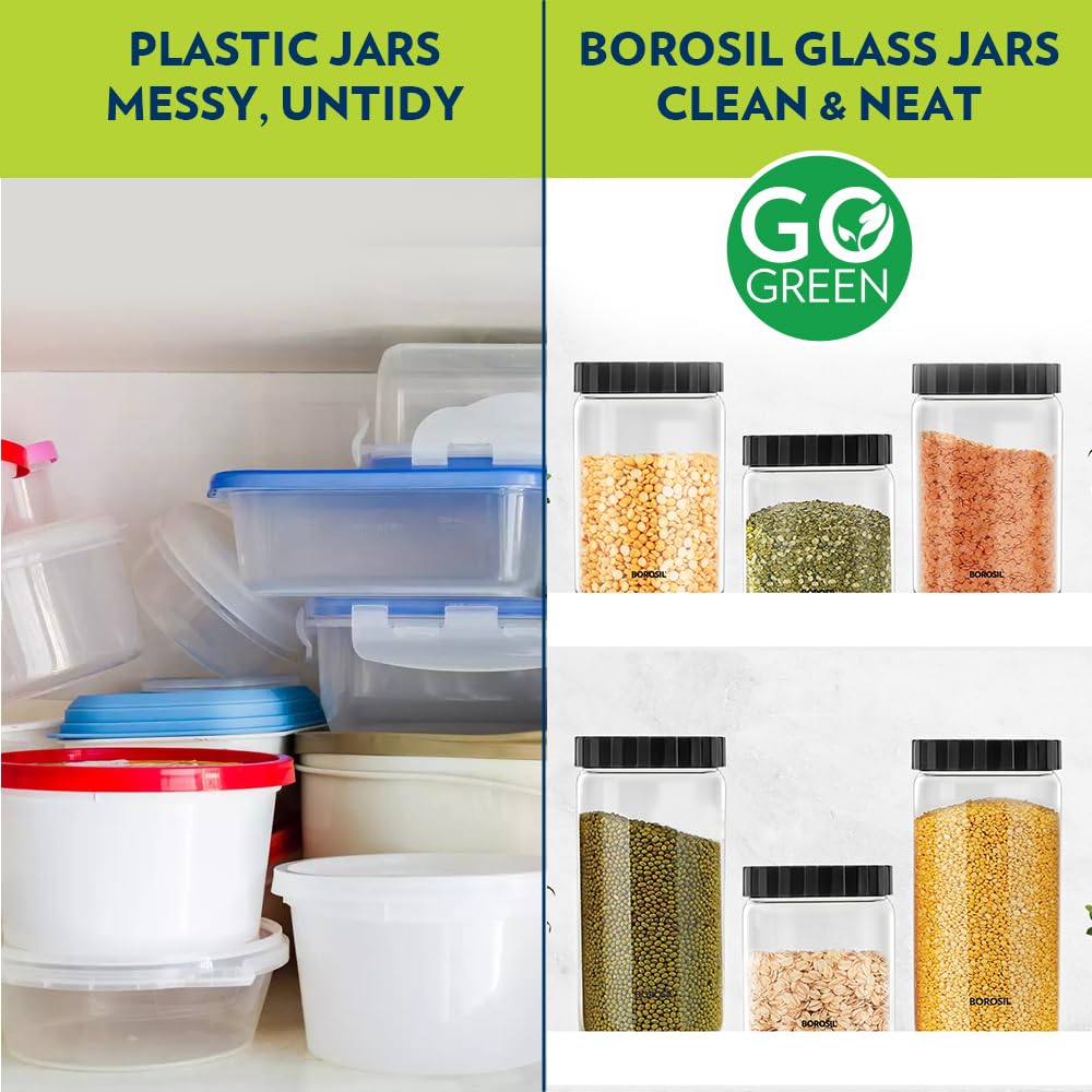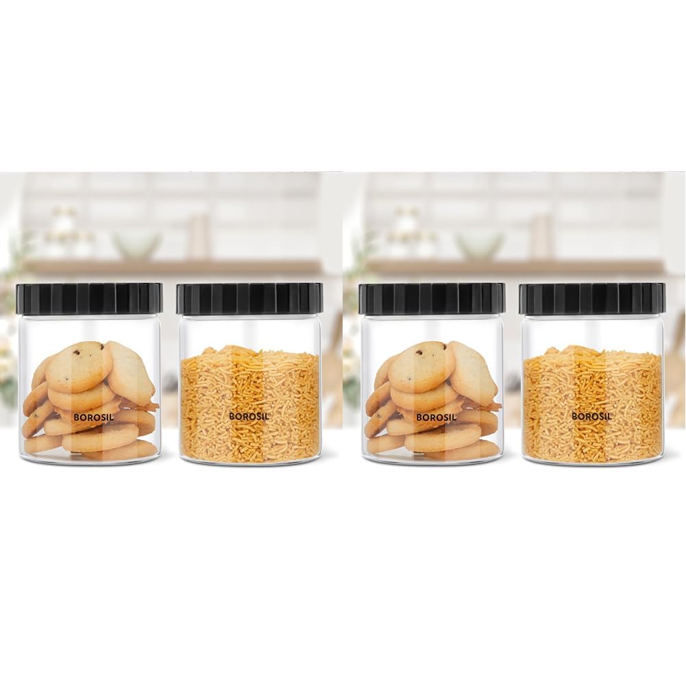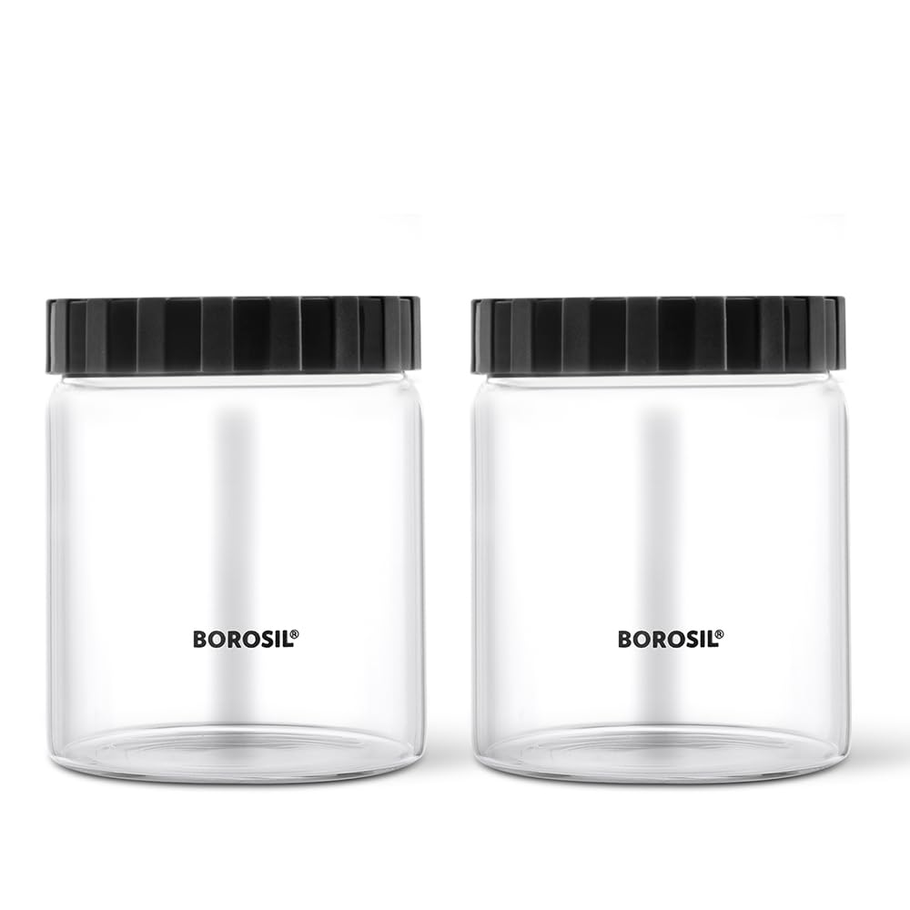 HomeKitchenContainersJars & ContainersBorosil Endura Glass Jar with PP Lid Set of 2 (600 ml Each) Air-Tight Storage Container for Kitchen Glass Jar for Storing Spices Dals Grains Rice Clear with Grey Lid Round (Pack of 2)