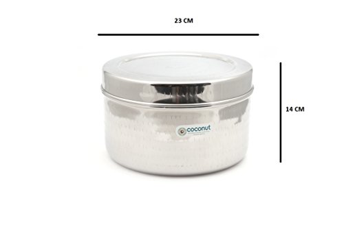 KCL is the premium brand by BM Agencies. This container has a capacity of 3500 ML. Comes very handy when it comes for multipurpose storage like snacks sweets puris papad etc.. Also comes is good use when travelling. The Height : 14CM & Length : 23CM. This products is made of Stainless Steel.