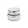 Coconut is range of innovative and quality products for home and kitchen. Through canister can used to store Puris Rotis Parathas Snacks Khakhara mukhwas dryfruits choclates buiscuits etc. This flat storage container is rust proof and hygienic. Made from 100% food grade stainless steel making it highly durable and resistance to corrosion. When not in use smaller container can be stacked inside bigger container saving lot of storage space.Container Set of 2 (Container 1 - 11.4 Inches Width & 3.5 Inches Height Container 2 - 12 Inches Width & 3.5 Inches Height respectively)