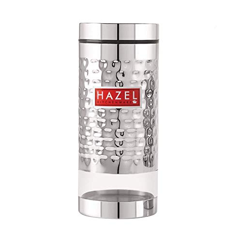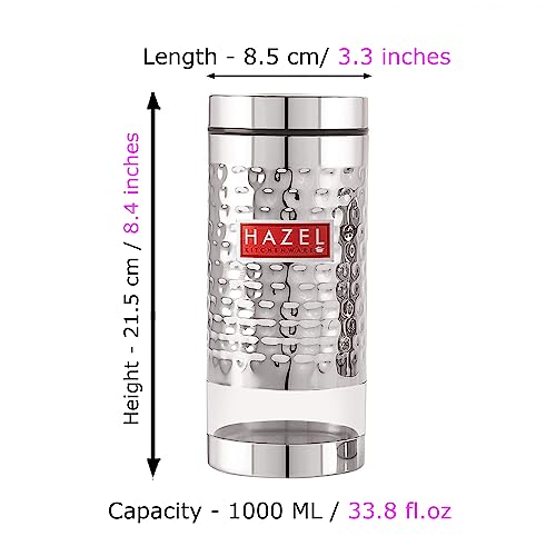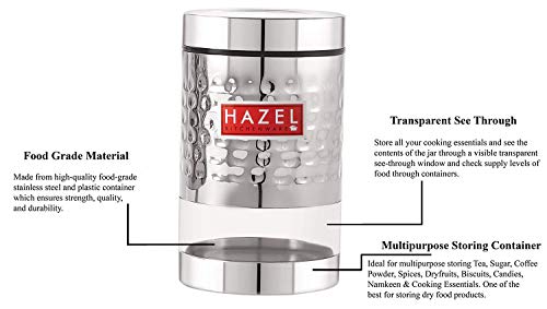 HAZEL Stainless Steel Hammered Finish Transparent Glossy See Through Container, Set of 3, 1000 ML Each, Silver