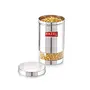 HAZEL Stainless Steel Transparent Glossy Finish See Through Container Silver Set of 5 1200 Ml Containers have a see through body looks like elegant and It is ideal for keeping a track of your food products. If you are looking for high quality & durable stainless steel storage Containers for storing Then we are offers you high standard stainless steel storage container which is perfect to meet your storing need. This highly durable stainless steel storage containers with stainless steel lid. Perfect for gifting purposes at weddings anniversaries. all your cooking essentials and see the contents of the jar through a visible transparent see through window and check supply levels of food inside containers. Made from high quality food grade stainless steel container which ensures strength quality and durability.The modern design see through canister container is perfect for your beautiful home and kitchen.Ideal for multipurpose storing Tea Sugar Coffee powder Spices Dryfruits Biscuits Candies Namkeen & Cooking Essentials. Wash Care Instructions:- Wash with lukewarm water Do not scrub with scrubber Not for hot filling. Avoid the use of abrasive scrubbers.Product Dimension:- 10.4 x 10.4 x 18.5 cm (LxBxH) Weight:- 270 Gms Diameter:- 10.4 cm Capacity:- 1200 ML. 3 Month Manufacturer Warranty. This product is under 3 Months Warranty from the date of retail purchase against any manufacturing defects in material and workmanship. The Warranty does not cover damages resulting from accidents mishandling or tampering with the mechanism. Warranty valid against producing original bill endorsed by the seller.