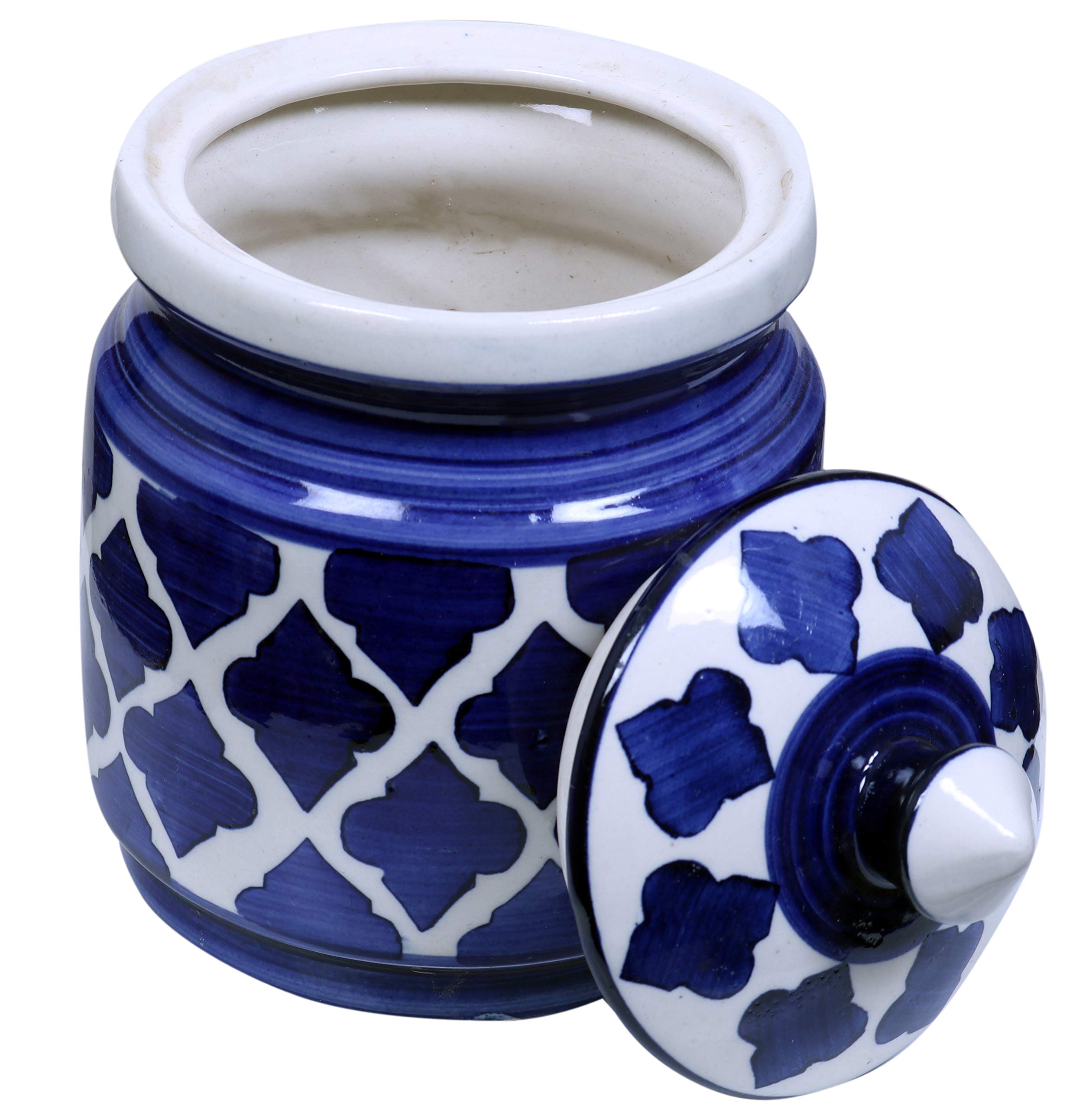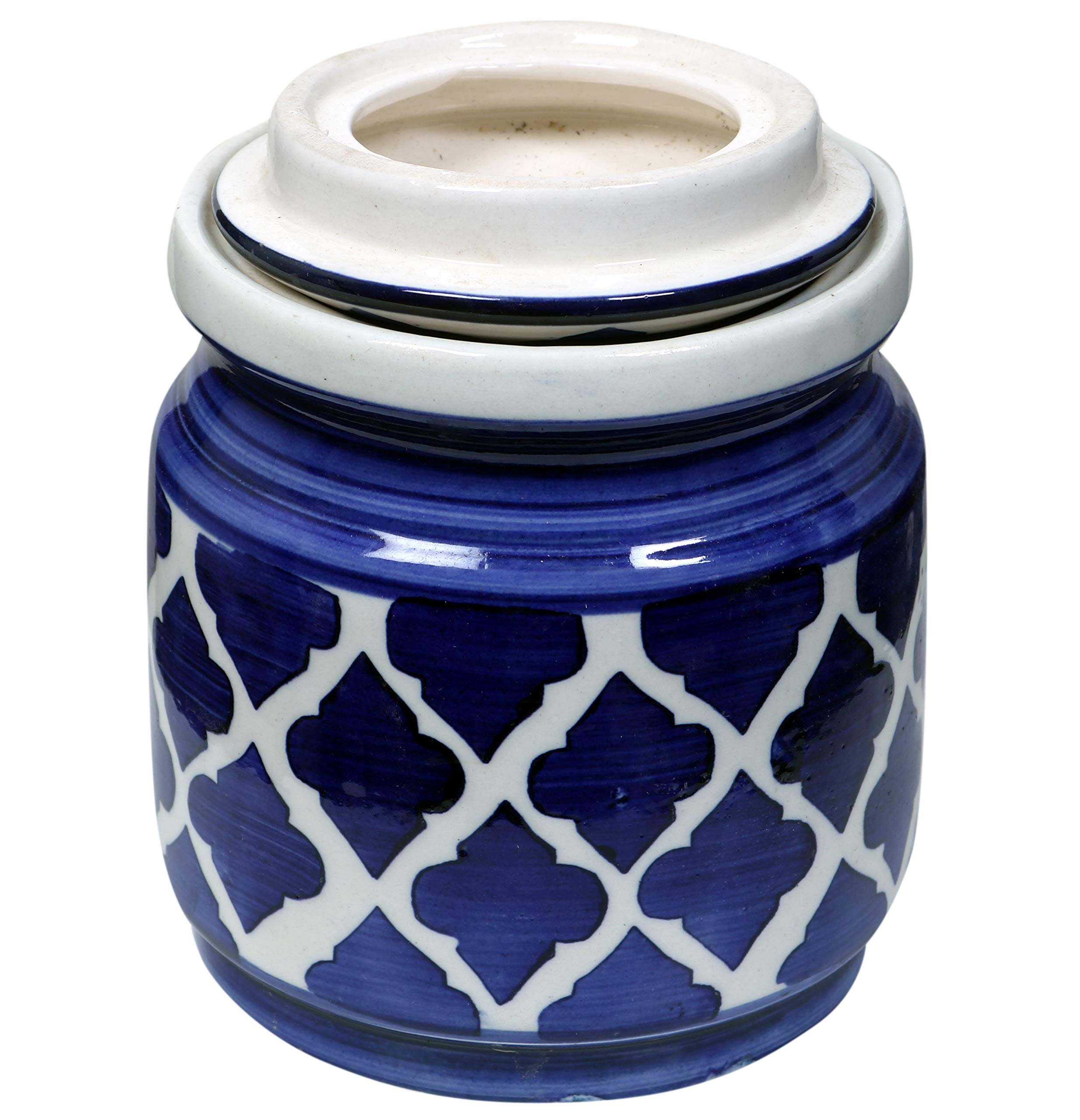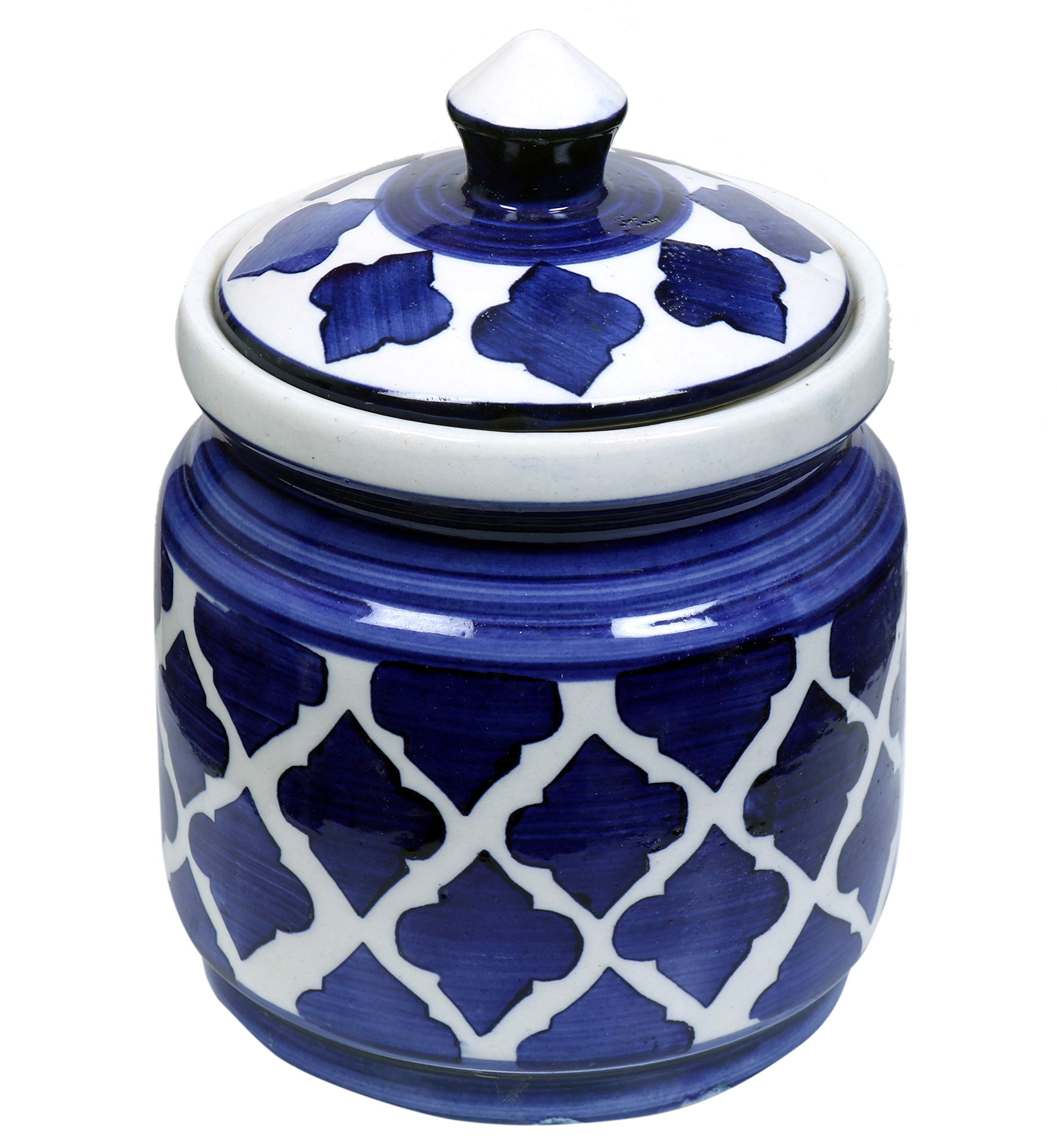 KHURJA POTTERY Ceramic Storage Container Jars with Lid Storage Canister (Blue) -1.25 Kg