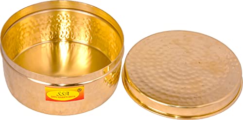 • Shiv Shakti Arts Pure Brass Box | Dry Fruit Box | Laddu Dibba | Dibba | Katordaan Round Shape (Small 500 ml )