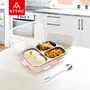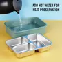 The built-in water injection feature makes it easy to heat or cool. Simply add hot or cold water into the bottom basin before breakfast lunch or dinner! The bottom bowl is made of food grade PP and can also be used to hold fruits or salads. The lunch box itself does not have a long-term heat preservation effect it needs to be added with hot water to achieve heat preservation. Due to the flexible & rubberized hinge this kids lunch box that is very easy to open and durable even for pre-school children; only need to open 6 clips the buckles are surrounded by soft plastic which will not hurt children's hands.