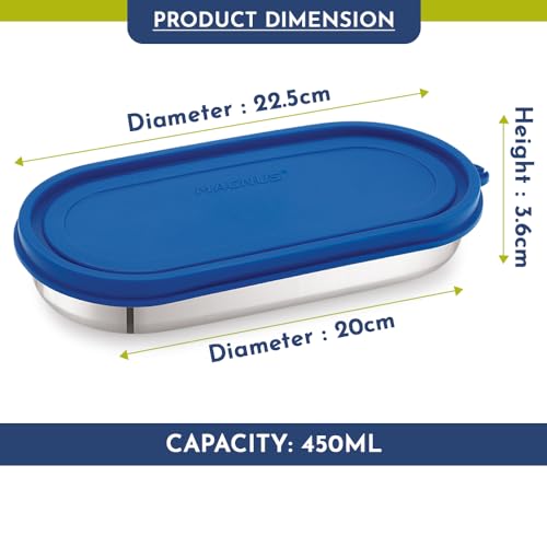 Magnus Easy Lock Oval Prime Container Stainless Steel Airtight & Leakproof Lid & Container for School Office Picnic Ideal for MenWomen and Kids (Royal Blue450ml)