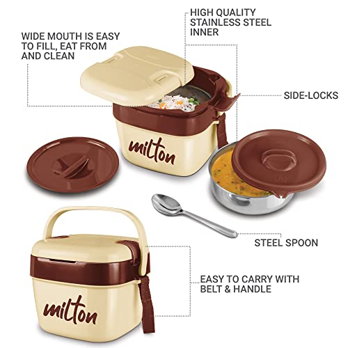 Cubic Insulated Lunch Box Has Inner Stainless Steel Which Keeps Food Warm and Fresh for Hours. The Tiffin Is Made Of Food Grade Material And Stainless Steel Inner. A Separate Small Stainless Steel Leak Proof Container for Dry & Wet Food along with Steel Spoon.