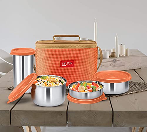 Introducing Steel Softline Tiffin series from the house of Milton. Delicious Combo is an ideal choice to carry home-made food in 100% leak-proof stainless steel containers. It comes with 3 stainless steel round containers along with a stainless steel tumbler. The outer jacket is made of finer quality and trendy fabric and high grade insulation that keeps contents hot and fresh for long hours. The stylish design and select colours of jackets make it a perfect meal companion.
