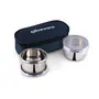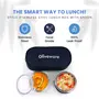 oliveware 6 C Crunch Lunch Box 2 Stainless Steel Containers (300 ml) Leak Proof with BPA Free Air Tight Lids Fabric Jacket - Navy Blue
