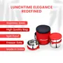 oliveware Lovely Stylo Lunch Box Leak Proof & BPA Free Lid 3 Stainless Steel Containers (2x290ml & 500ml) Fabric Jacket - Red