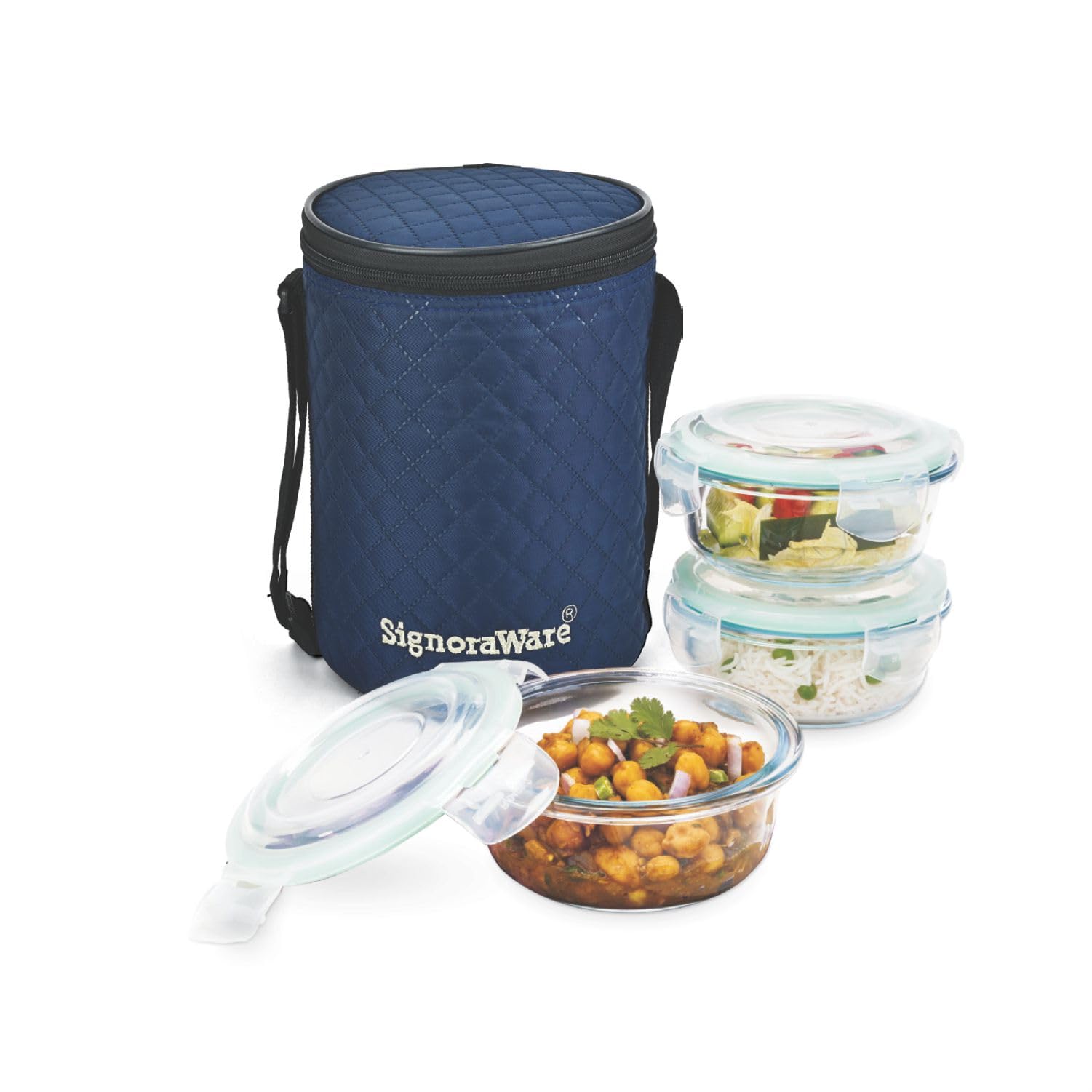 3-Pieces Containers (400ml/16cm) and 1-Piece Lunch Bag