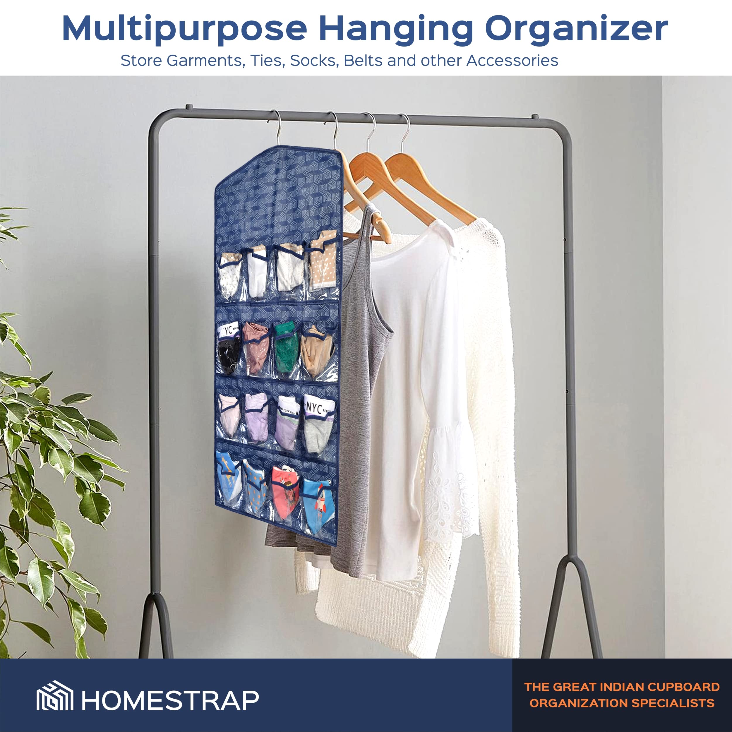 MADE IN INDIA | Homestrap Multipurpose Hanging Wardrobe Organizer for Storing Jewellery Garments Socks Belts and other Accessories