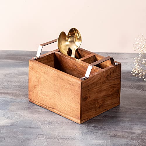 ABOUT: Trendy Way to Store your Spoons and Table Accessories; Made of Sheesham wood. The Cutlery Holder or Spoon Stand is ideal to keep spoons forks knives tissue papers etc for dining tables for Home or Restaurant cafe & Hotel use.
