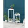 WROUGHT IRON CRAFTS Metal plant stand set of 2 Indoor outdoor pot stand/ Rack Decorative planter (White)