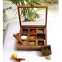 SAHARANPUR HANDICRAFTS Store Wooden Utility/Masala Box Spice Box - Sheesham Wood Spice Box Container with Transparent Top - Spice Box Holder(1Pc Wooden Spoon Free)