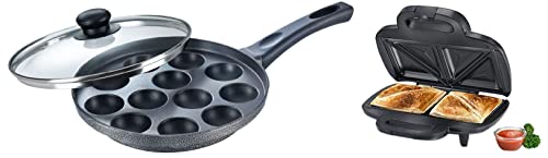 Prestige Sandwich Maker PSMFD 01 + Omega Select Plus Non-Stick Paniyarakkal with Lid (240 Mm Black)
