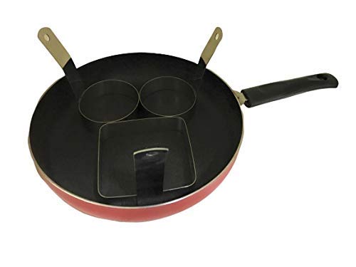 This Special non stick fry pan features attractive looks with a bright red exterior. This non-stick cookware is made of aluminium and is easy to handle and clean. A Its 2.6mm thick body gives stability and durability to this non stick fry pan. You can easily cook anything from vegetables to pancakes or use this fry pan for shallow frying. This fry pan definitely is a must have in your kitchen.Perfect for cooking eggs on any sized grill, this " egg ring will help achieve more consistent results with less waste!Stainless steel egg rings are the perfect way to make the perfect fried egg. Conventional frying pans donÆt allow for eggs to be cooked in an appetising way. When you think of the ideal egg, it likely comes with a bright yellow egg yolk and a thick egg white. Normally, when you cook in a normal frying pan, egg whites will leak across the pan and become thin and brittle. It doesnÆt make for an appetising egg, whereas using metal egg rings ensures that the egg white keeps its shape and will look as appetising as youÆd want it to when served.Do you want to make egg, pancake, cake quickly and keep it in shape? This item is a egg pancake mold, which are made of food grade stainless steel. Perfect pancake molds with handle design is easy to control. Let you enjoy making breakfast quickly and easily with eggs, pancakes, cookies, breakfast sandwiches. Just keep the egg rings on the fry pan and cook it as easily and in shape you can also make happy faces with such beautiful egg rings it also create interests among childrens.