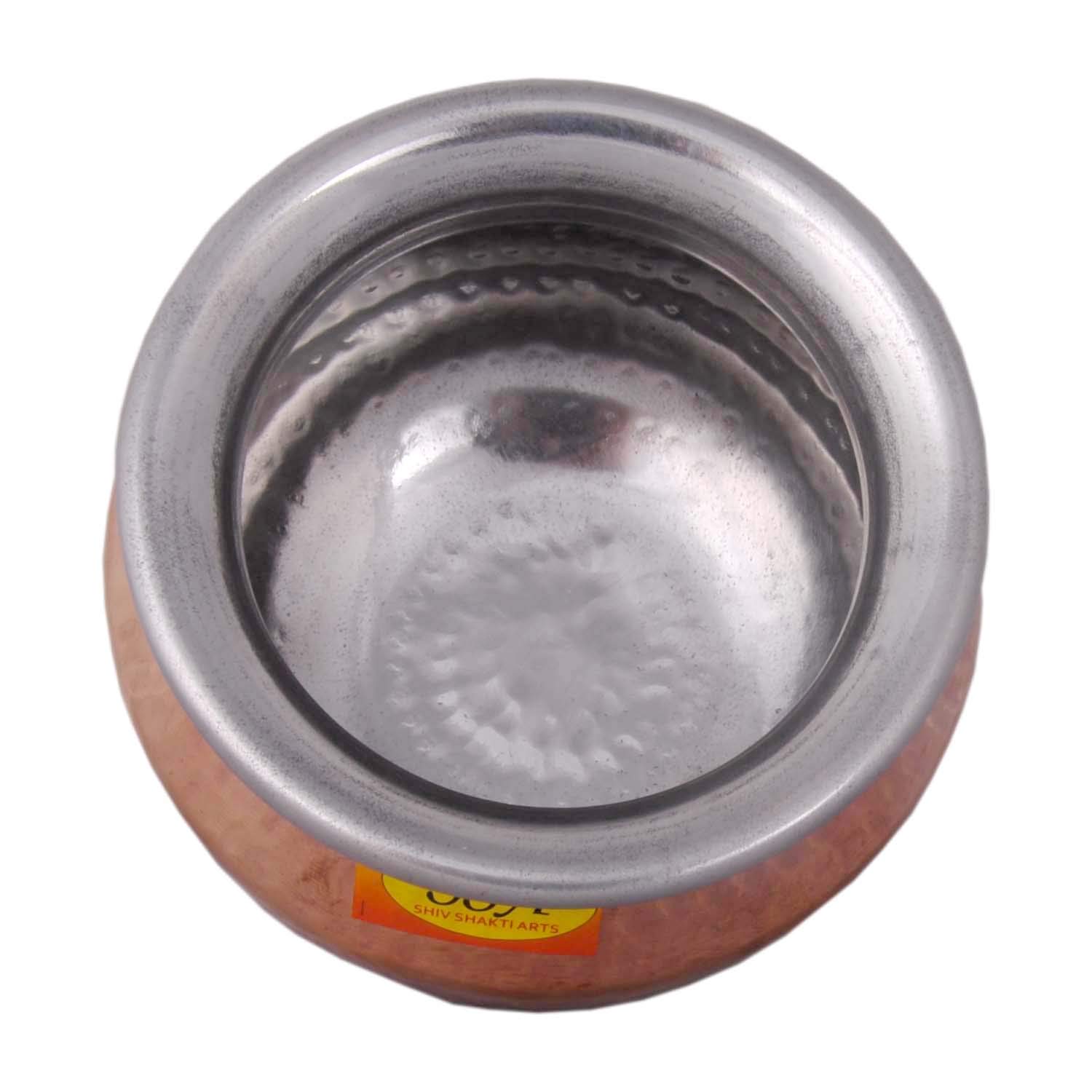 Shiv Shakti Arts® Steel Copper Handi - Punjabi & Rajasthani Design - with Lid for Serving Food(No.3-800 ML)