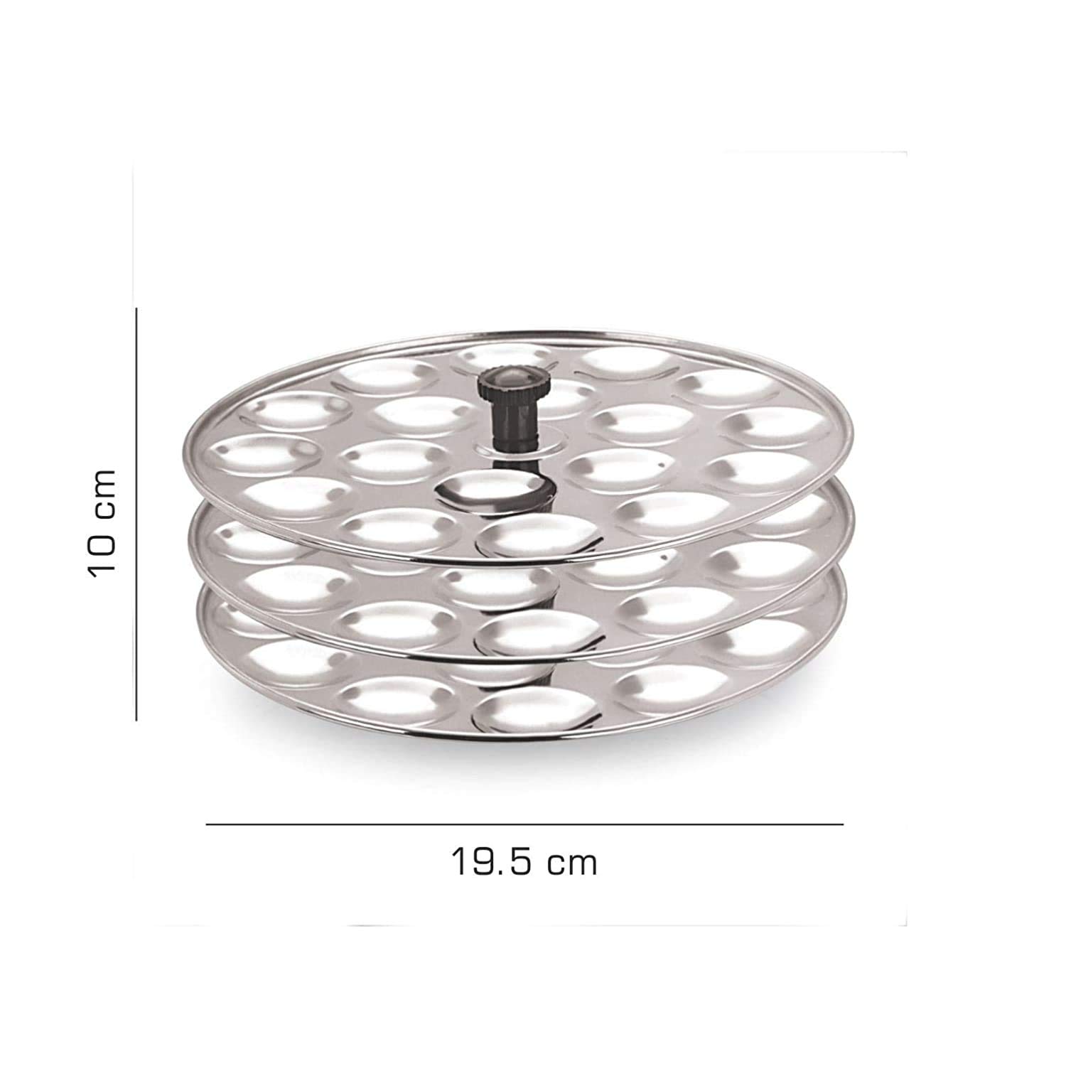 Dynore Stainless Steel Mini Idli stand stand with 3 Plates can make 54 Idlis. Entire set is easy to clean and wash, they have very exotic silver shining. Highly durable and made of fine food grade stainless steel. This set is made from high quality stainless steel making it exclusive and durable. This set has been beautifully designed to add grace to your dining experience. This set is strong in construction and will not bend or have dents during normal use