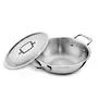 HomeKitchenTraditional CookwareKadhaiKENT Triply Kadai 24 CM with SS Lid 2.6 liter | Cool-Touch SS Hollow Cast Handle | Induction Friendly | Dishwasher Safe (Stainless Steel;Aluminium)