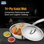 KENT Triply Kadai Wok 18 CM with SS Lid 1.6 L | Cool-Touch Diecast Handle | Induction Friendly | Dishwasher Safe (18 CM), Stainless Steel